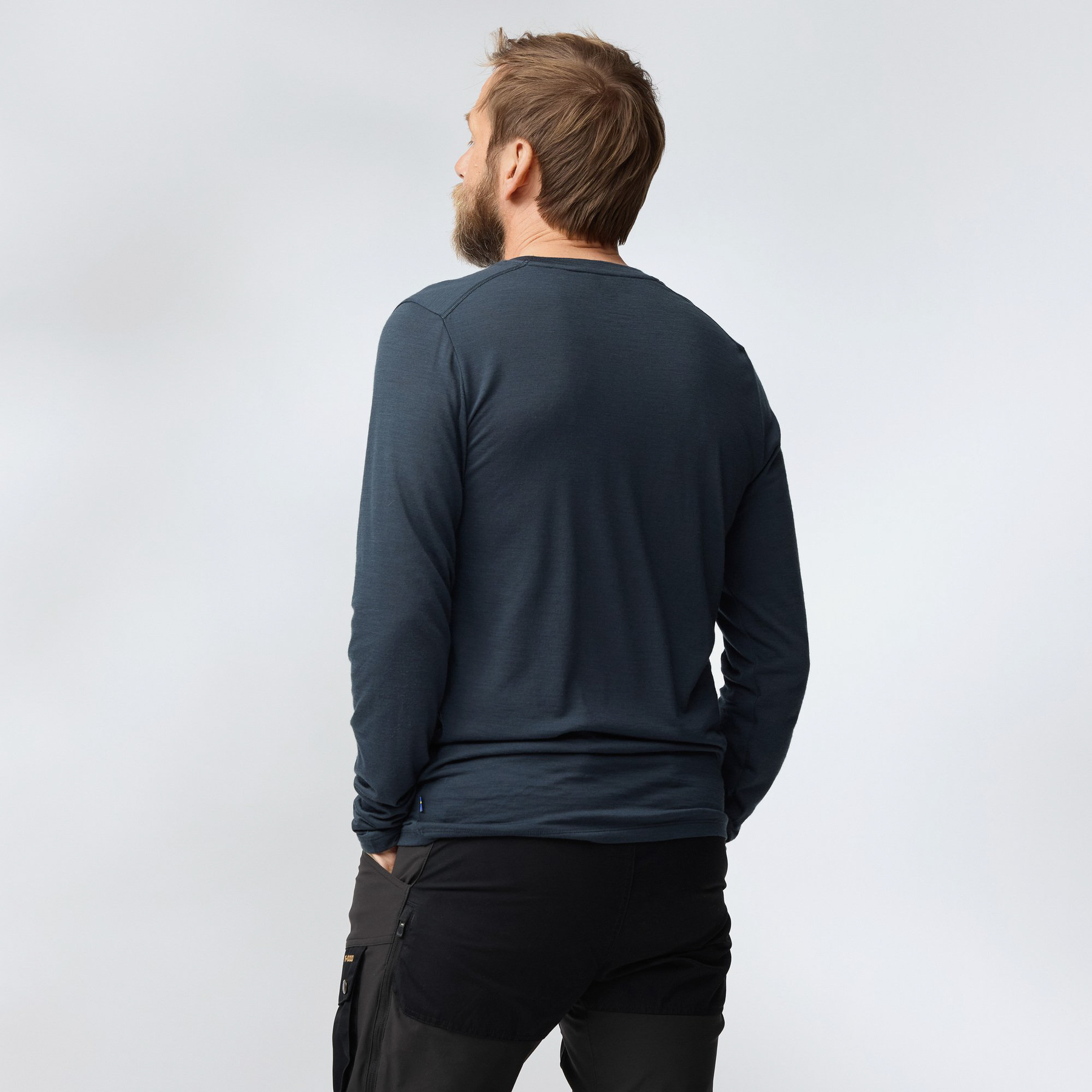 Lightweight, long-sleeved top in a soft jersey knit made from merino wool and recycled polyester. Combines the temperature-regulating properties of wool fibres with the durability and moisture-wicking properties of synthetic ones. A perfect first layer in both warm and cold climates, and extra useful on multiday trips as wool naturally resists bad odours.