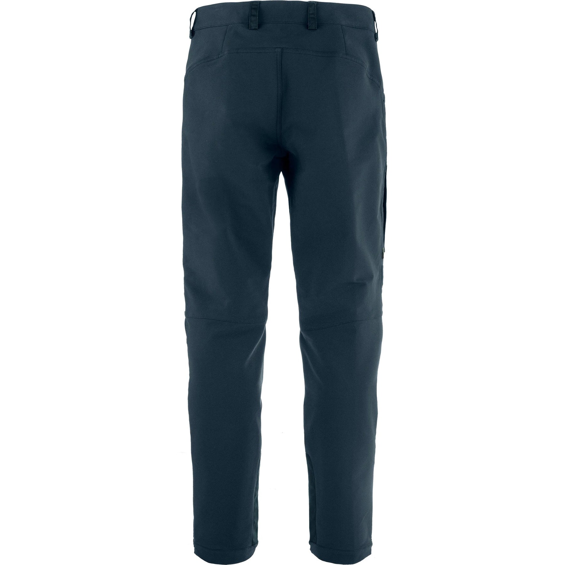 All-round, soft-shell trekking trousers for cold conditions made from a recycled polyamide, polyester and elastane blend with a DWR produced without PFAS.
