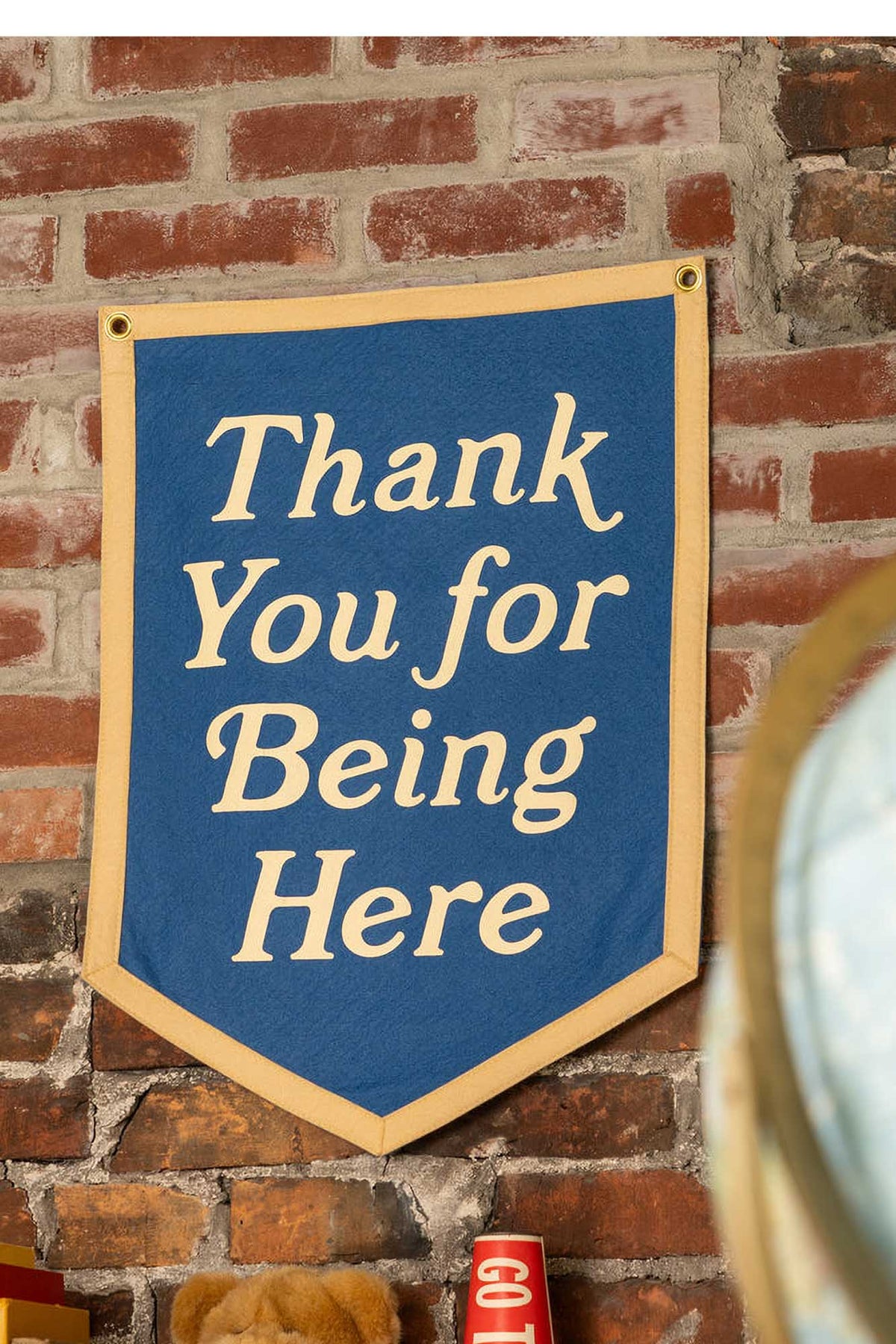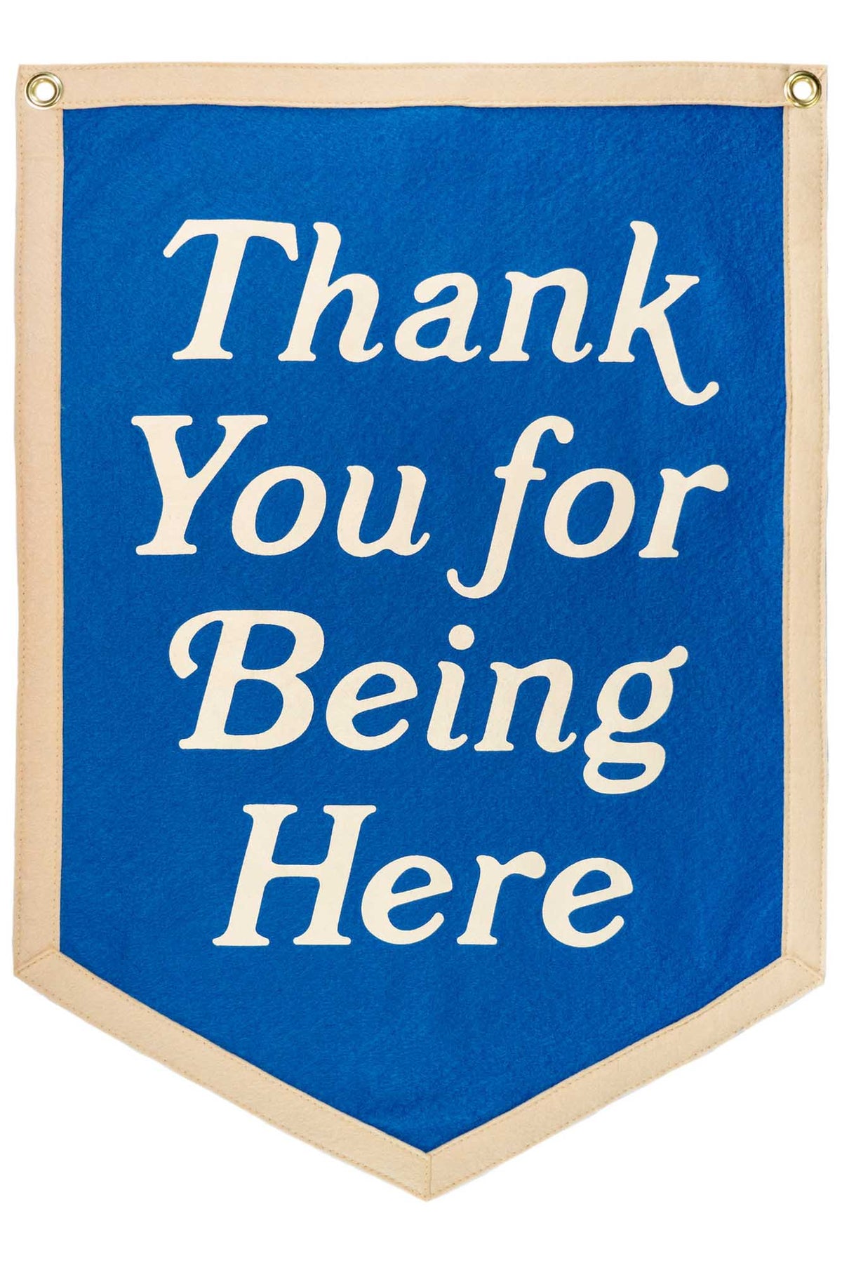 Show your appreciation for those around you with our newest flag. Featuring bold cream lettering on a cobalt blue backdrop, this flag is the perfect way to celebrate togetherness and positivity—hang it with pride!