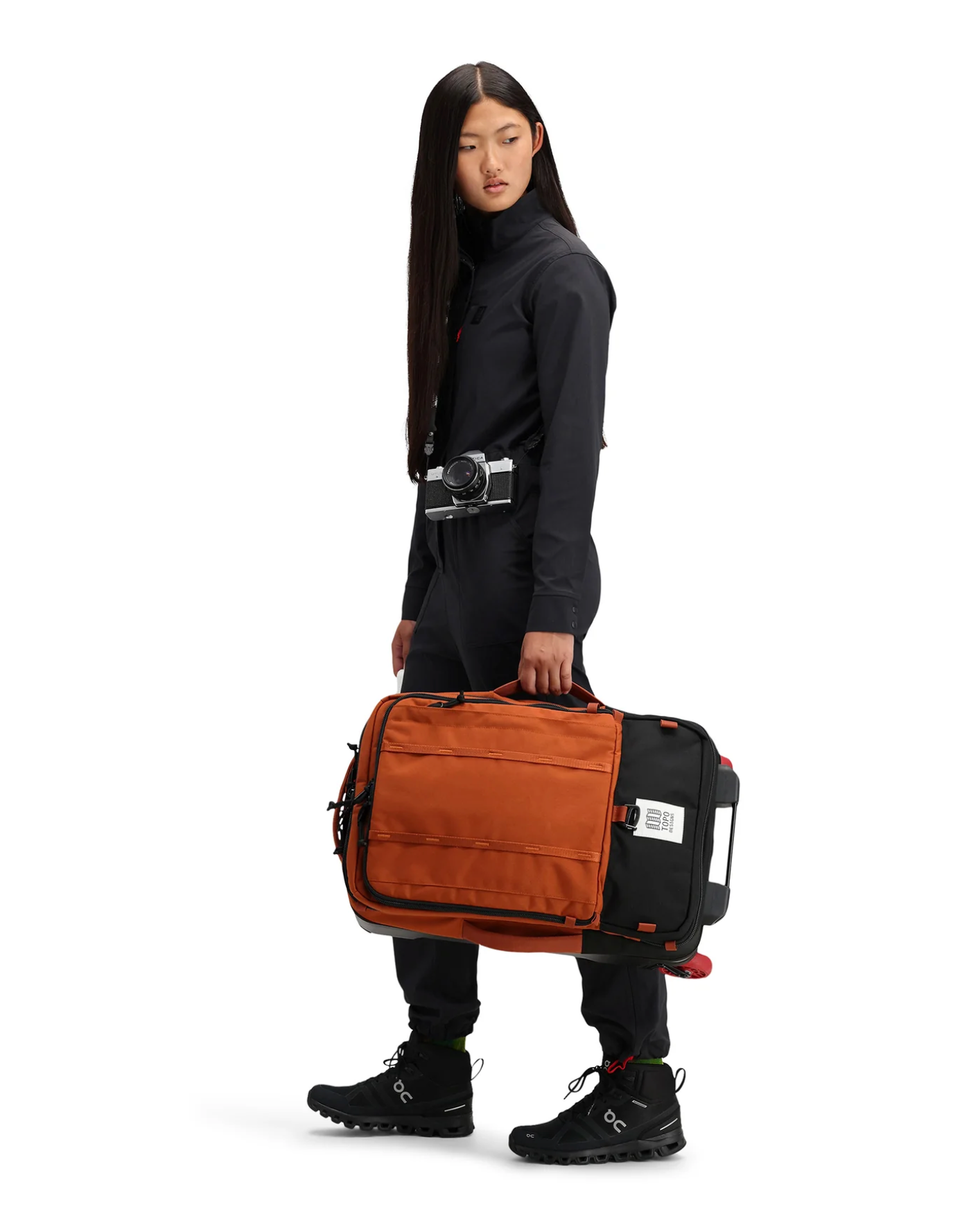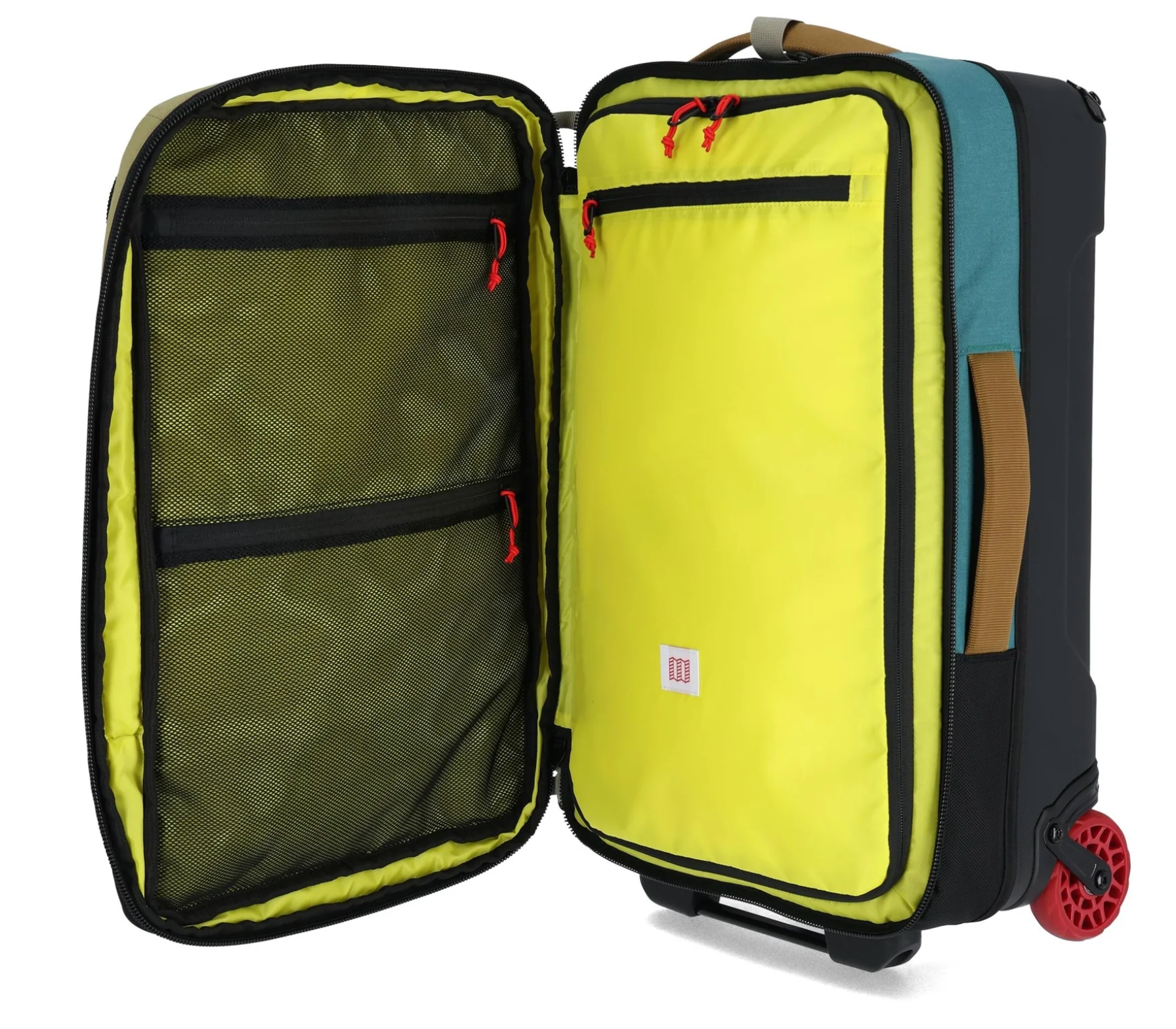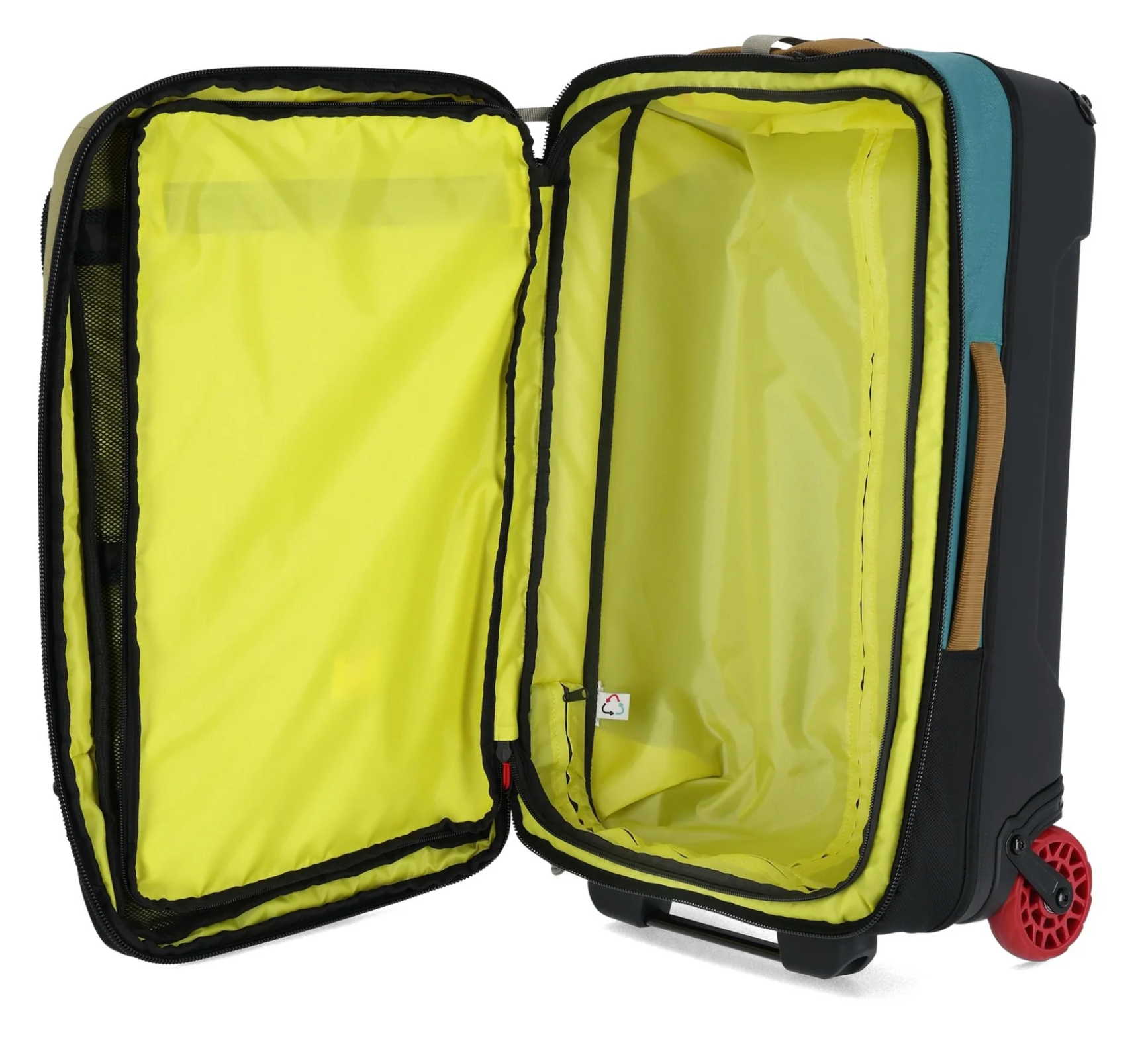 Built to make one-bag-travel as easy as possible, our Global Travel Bag Roller (made with recycled materials) packs plenty of internal organization into its carry-on friendly size, and 3-way carry options ensure a smooth trip. Use the side grab handles or stowable backpack straps for hauling your bag through cities or navigating airplane aisles, or extend the suitcase handle to roll smoothly through the concourse. Two internal compartments feature both mesh and lined pockets for holding all of your small gear. We used heavy-duty, crush-proof wheels for a smooth ride and added our PackFast™ bag attachment clips so you can easily tote both your carry-on and personal items efficiently.