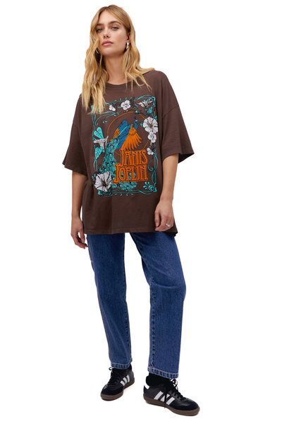 Janis Joplin Floral Peacock OS Tee - Coffee Quartz