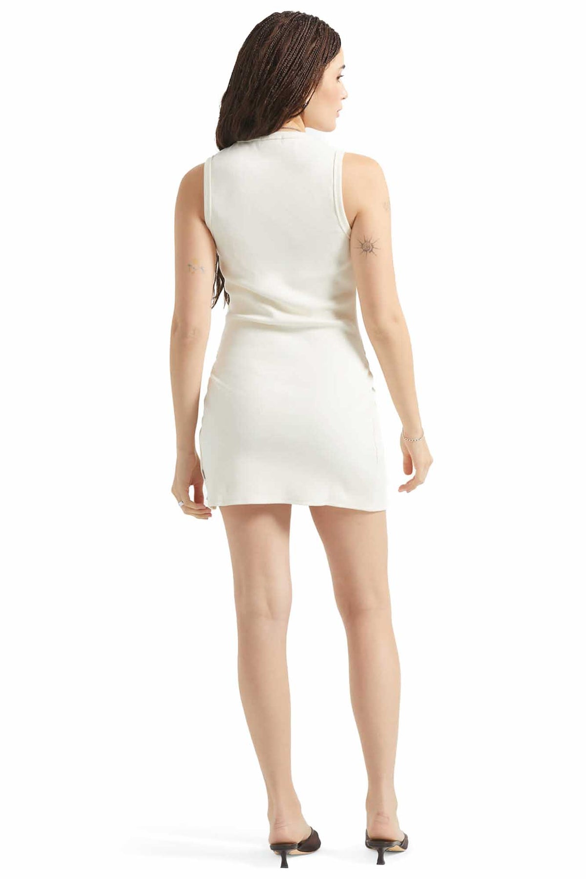 Form-fitting ribbed mini dress with adjustable side details for your perfect fit.