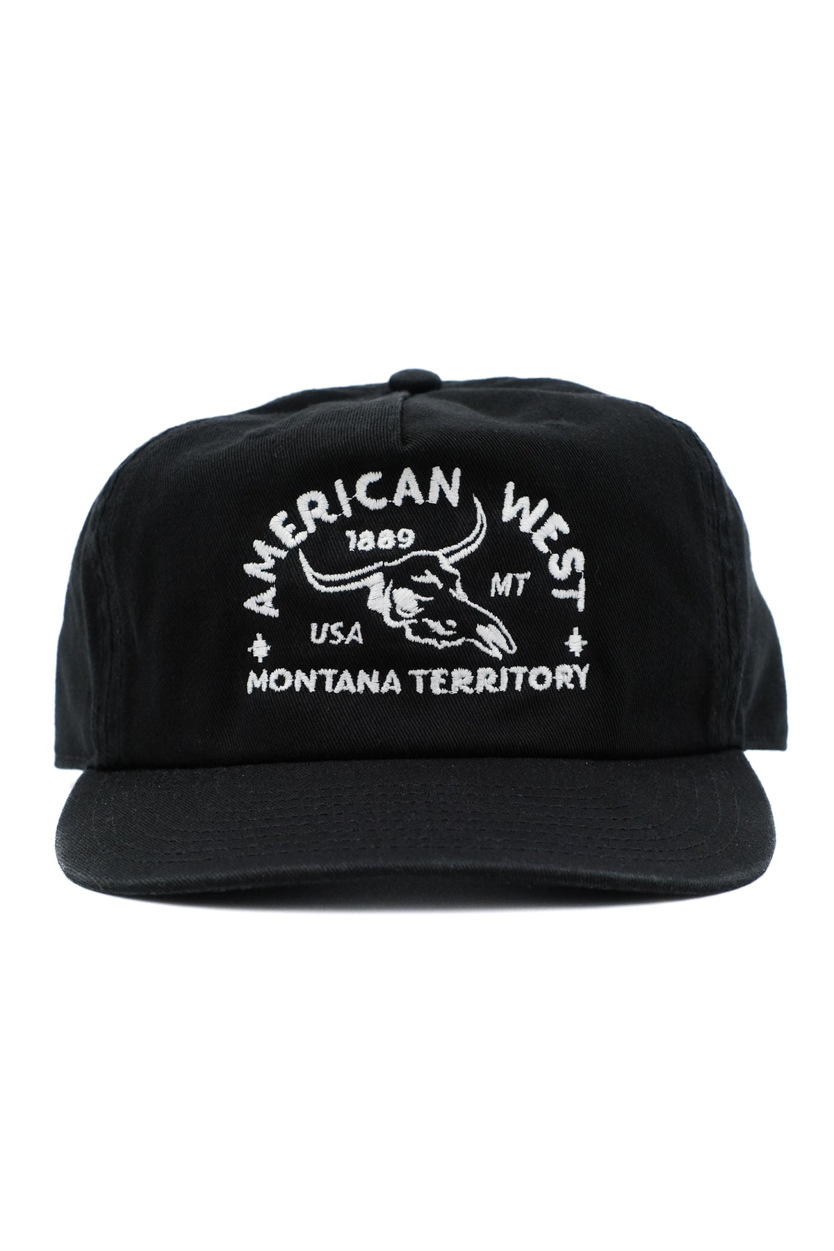 Our Montana Territory design stitched on an unstructured cotton cap.