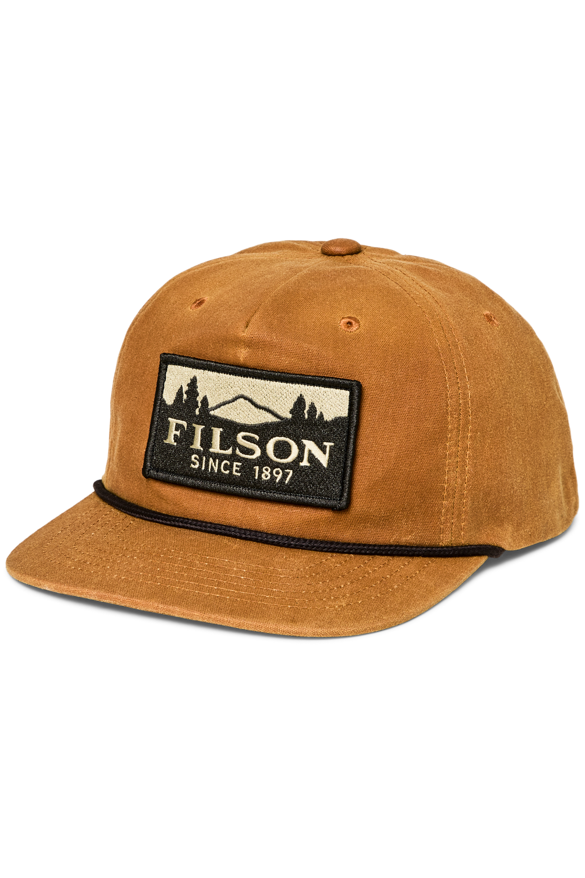 An adjustable snap-back strap ensures a custom fit. Finished with a classic embroidered Filson logo patch.
