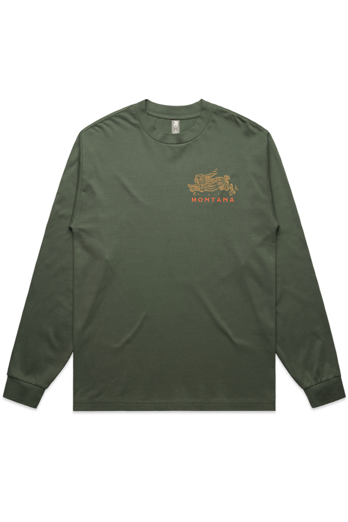 Our Howler Heavy Long Sleeve Tee, crafted for durability and comfort. Designed in a relaxed fit, it features wide neck ribbing, ribbed cuffs, and double needle hems, ensuring both style and resilience. Built to last in heavy weight 8.2 oz 100% carded cotton.