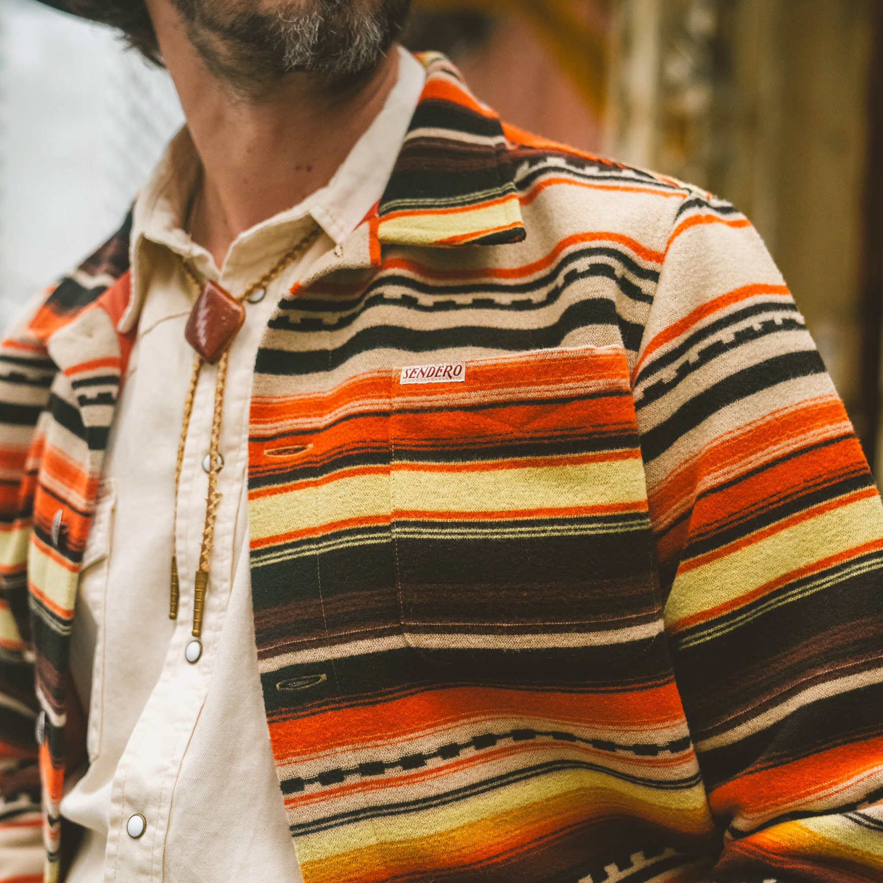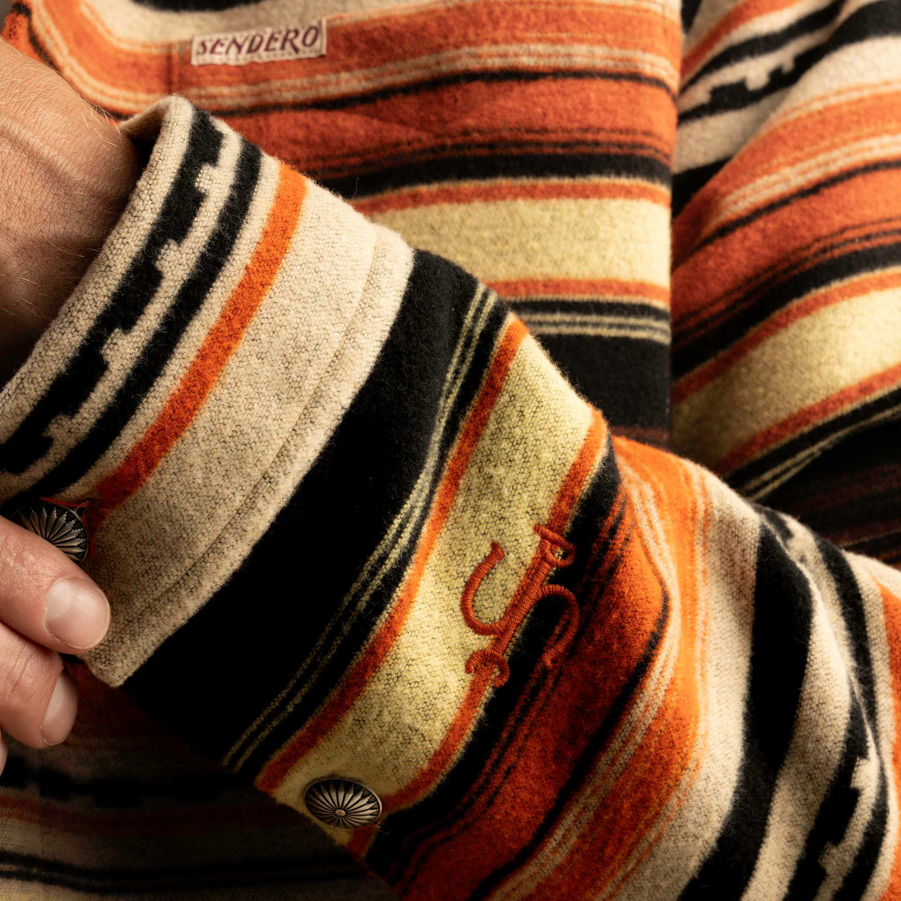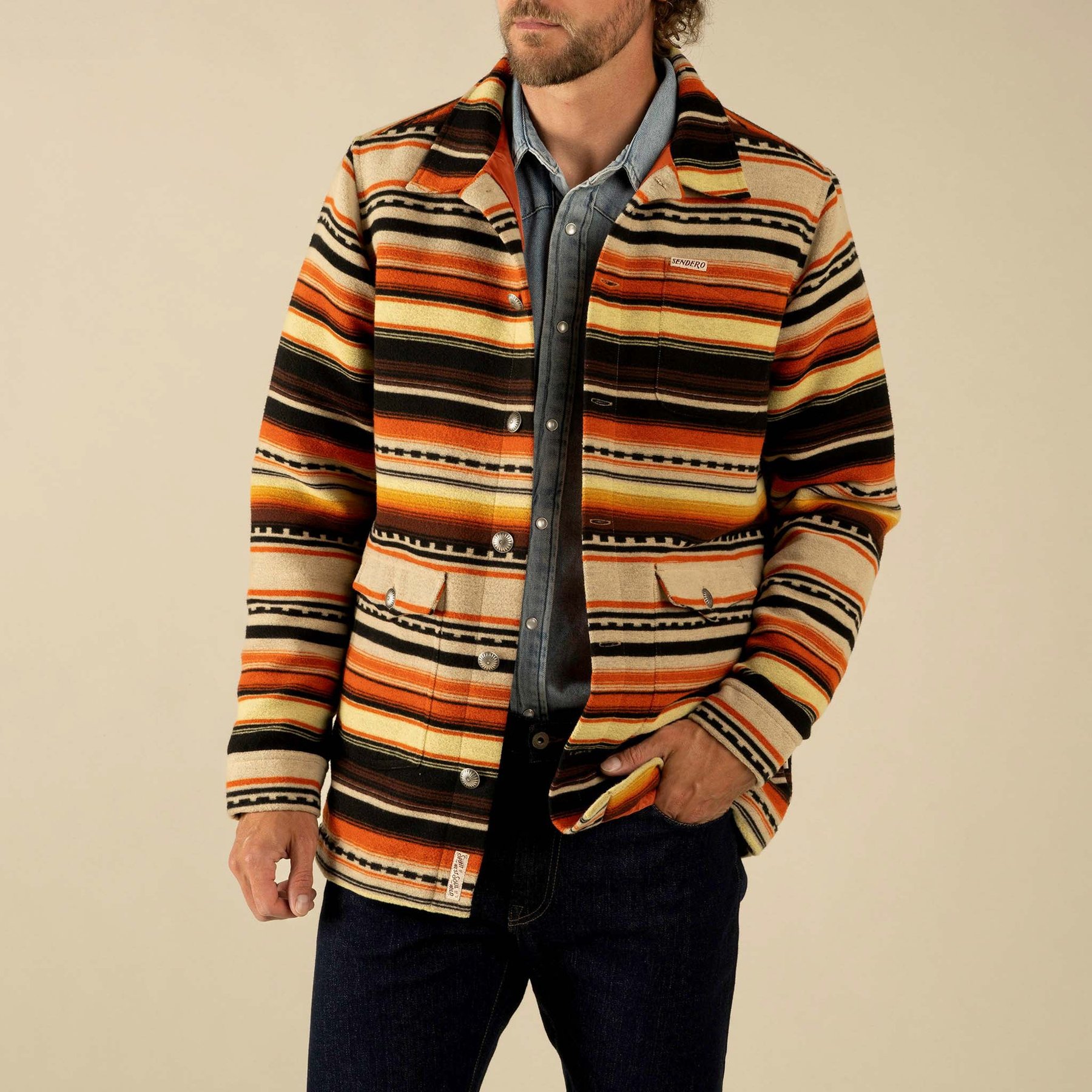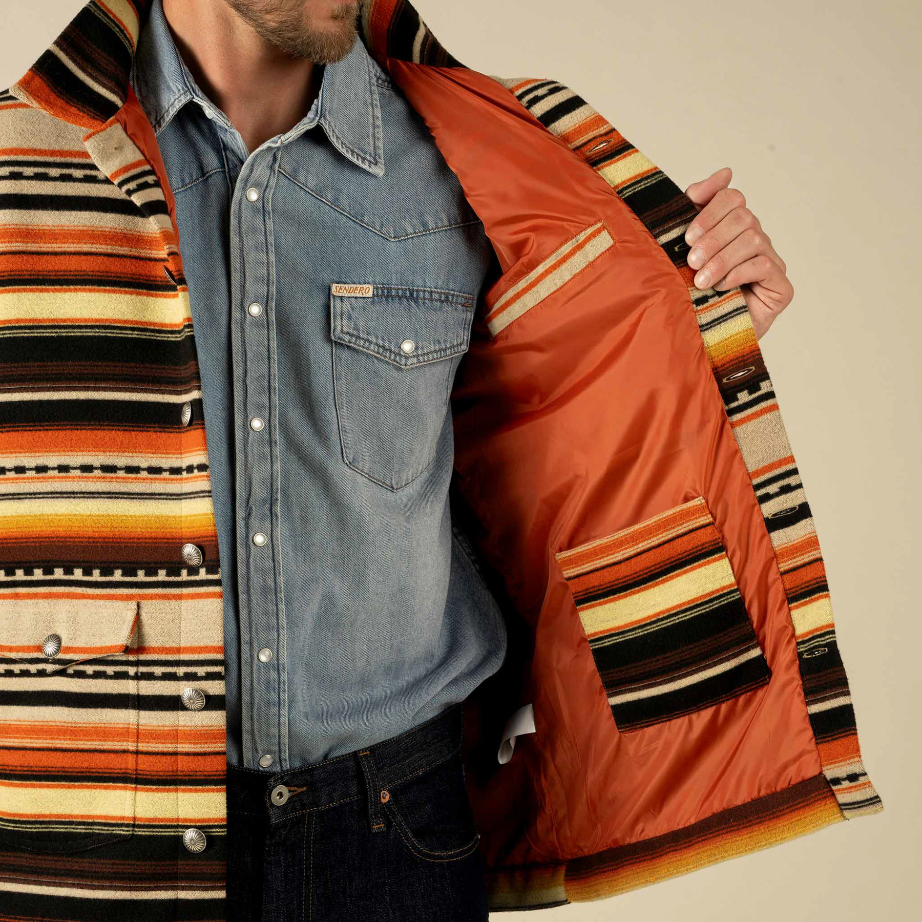 Rollin’ into a high stakes poker game out west? Ridin’ your pony out across the high plains? Heck, maybe you’re just ordering a stiff drink at the local dive. Wherever you’re headed, the Santa Fe Jacket means business. It’ll keep ya warm alright. But that’s only about half the equation. The signature southwest print, bold colors, and vintage-inspired concho buttons will make you look as done up as they come.