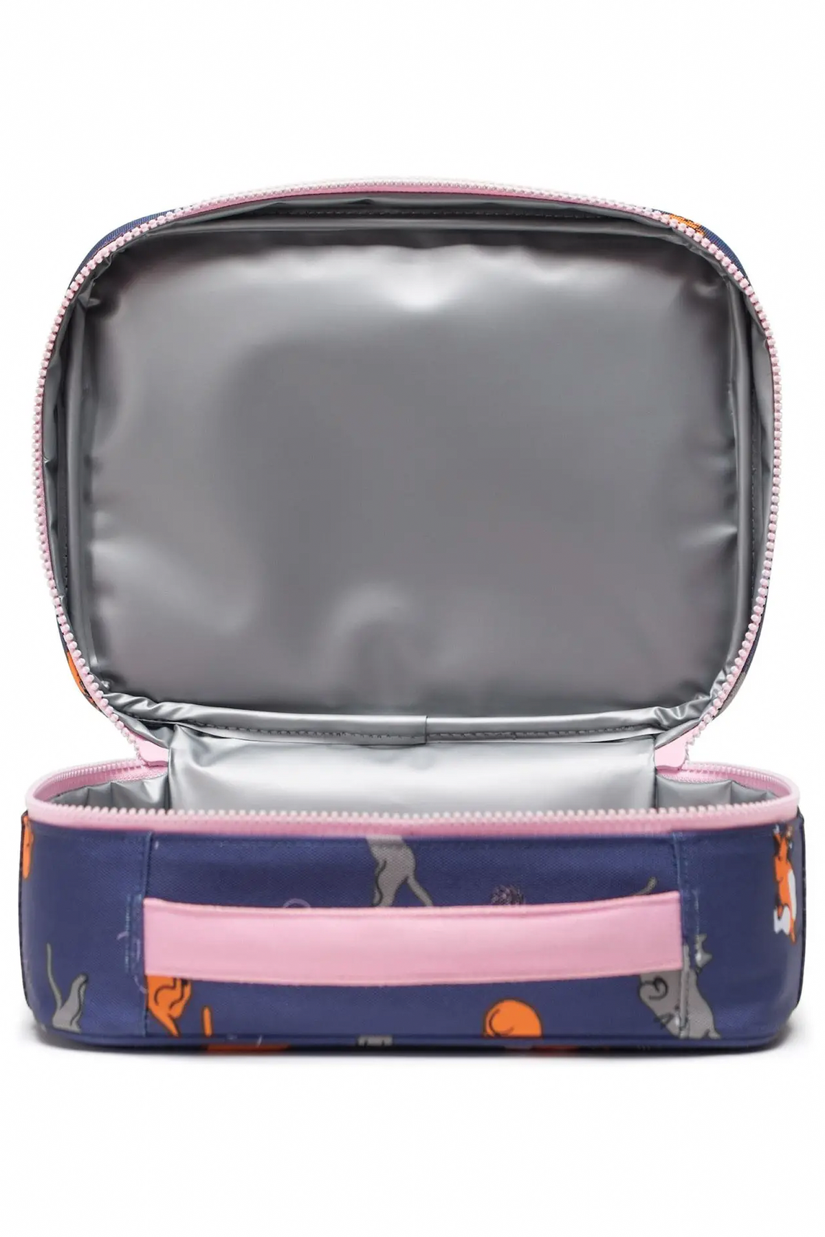 Their lunchtime companion. This durable lunch box holds snacks and sandwiches in an insulated main compartment that wipes clean. Bring it to a picnic or on journeys to the playground, cafeteria and beyond.