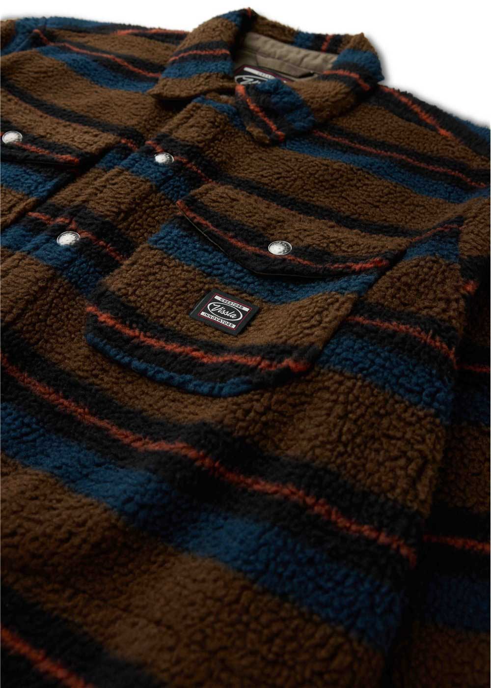 Vissla’s heavyweight recycled polyester sherpa overshirt delivers exceptional warmth through plush construction that feels like a warm embrace. Front button closure provides easy layering, while dual chest pockets and hand pockets offer ample storage. Vissla Creators woven patch at front chest pocket authenticates the mountain-inspired design.