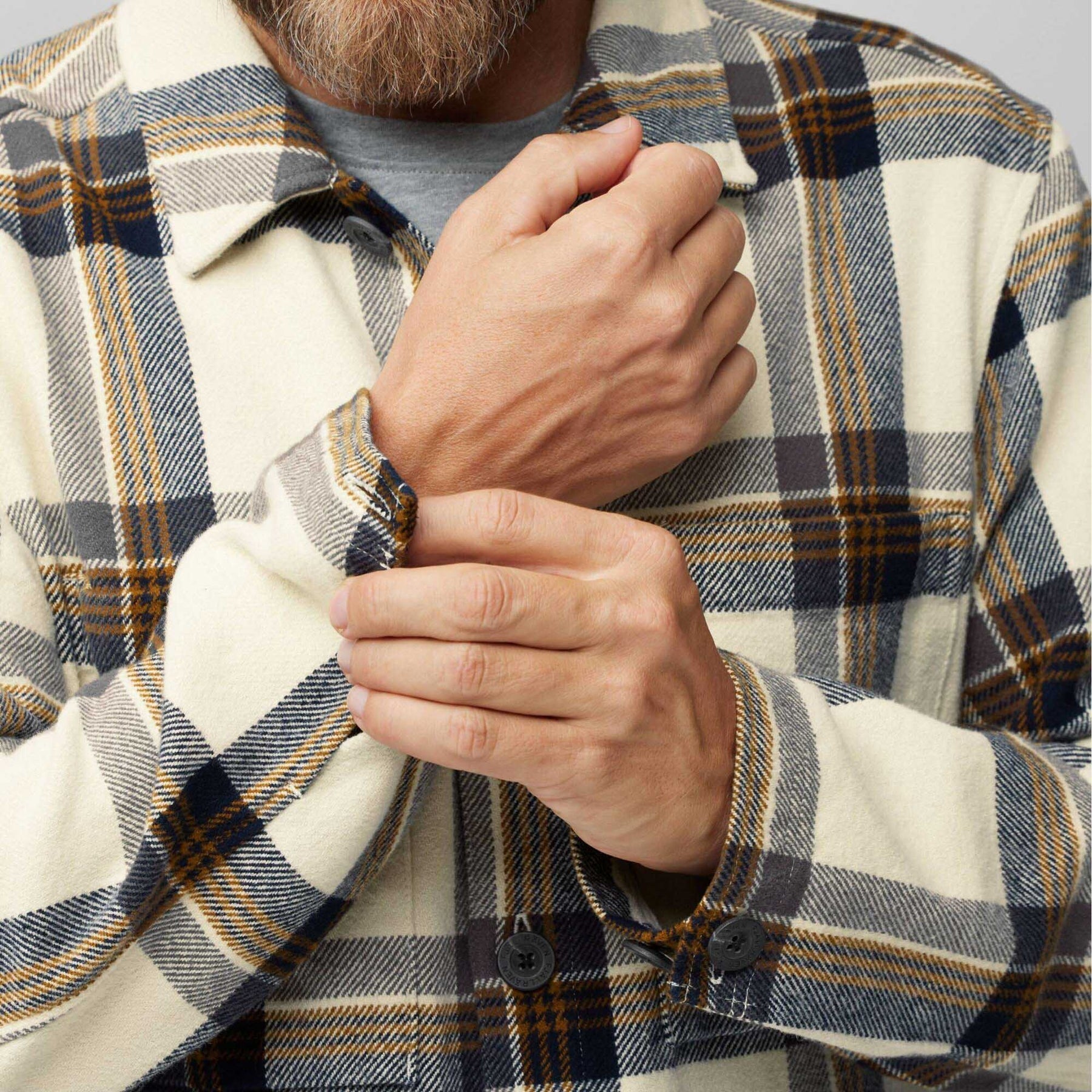 Perfect for all kinds of casual outdoor activities, this long-sleeved flannel shirt in a heavy organic cotton twill can be worn both as a light jacket and a shirt over a t-shirt or base layer. Singi Flannel Overshirt for men has large practical bellows chest pockets as well as hand pockets sewn into the side seams. Cuffs with button adjustments.