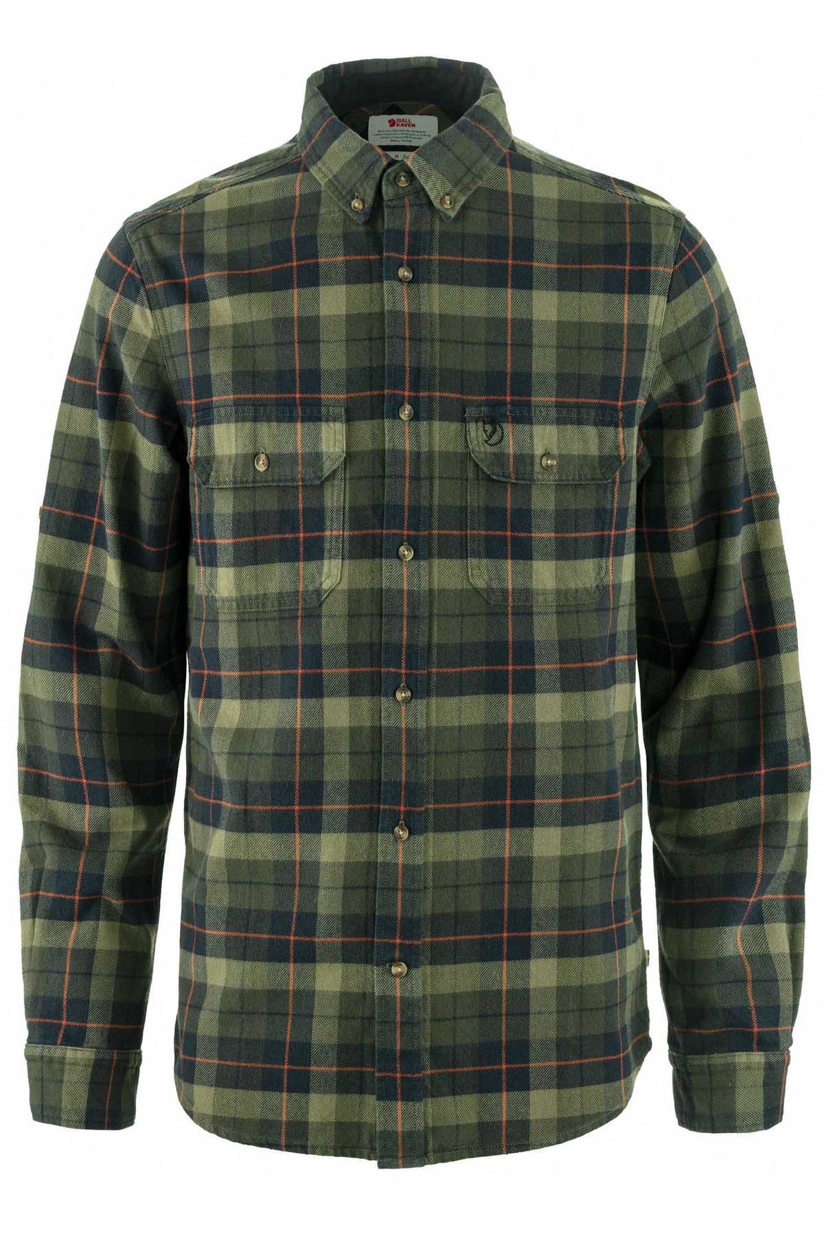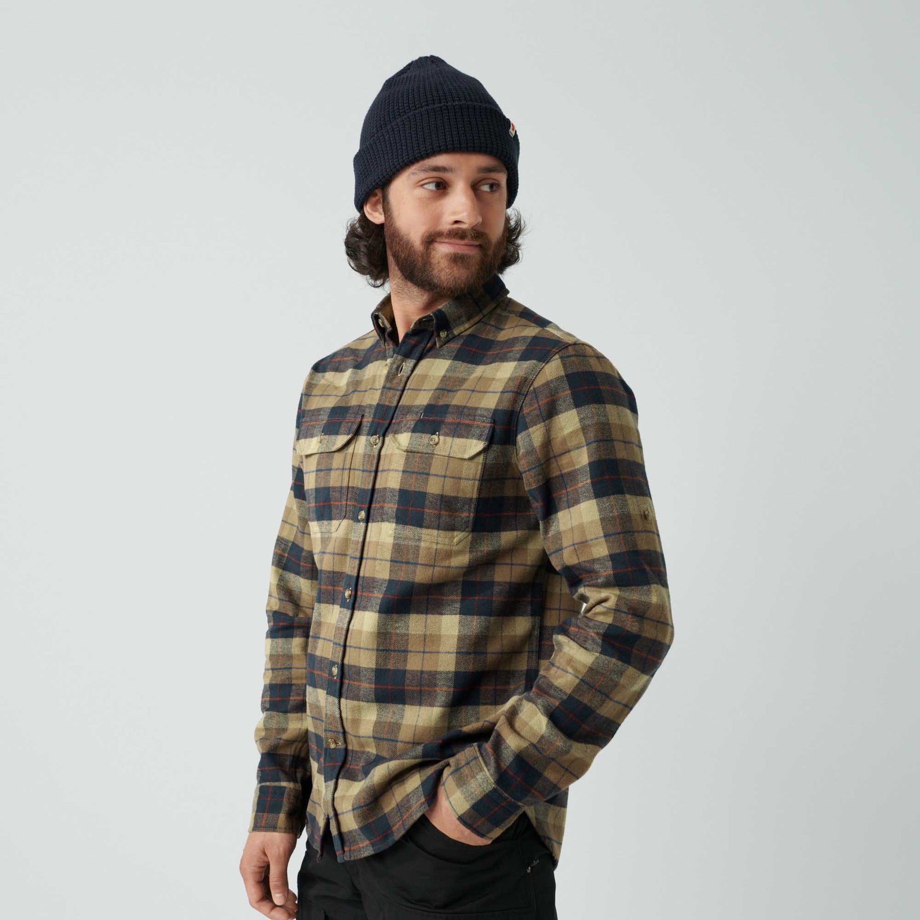 Long-sleeved outdoors shirt with button-down collar and regular fit. Made from soft cotton flannel with G-1000 reinforcements on the inside of the collar, sleeve cuffs and pocket flaps. Two chest pockets with pen holders. The sleeves can be rolled up and kept in place with a button.
