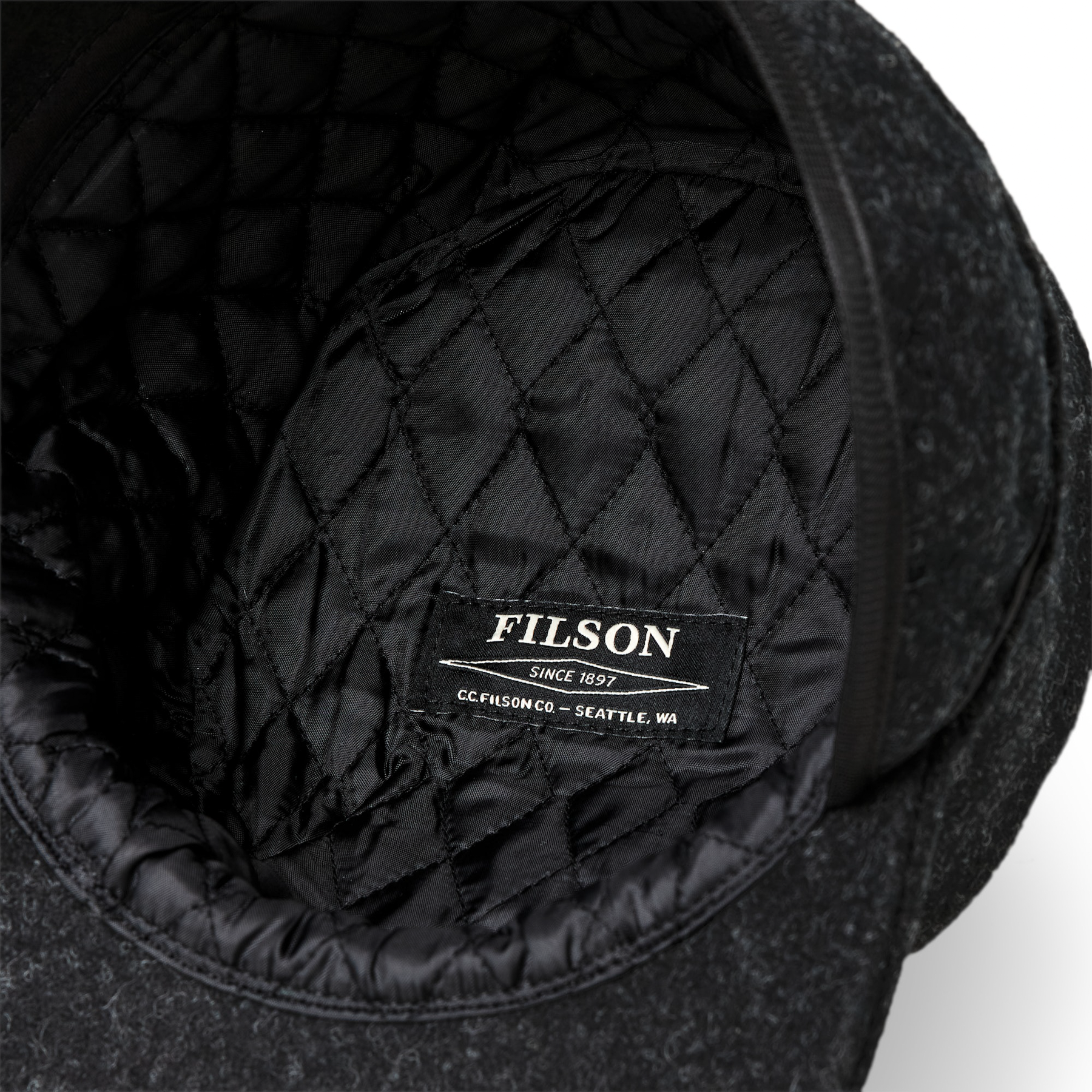 Filson’s naturally rain-repellent Mackinaw Wool cap features a 2"-wide bill with tuck-away earflaps. An insulated crown and nylon lining keep your head insulated and dry even in snowy conditions.