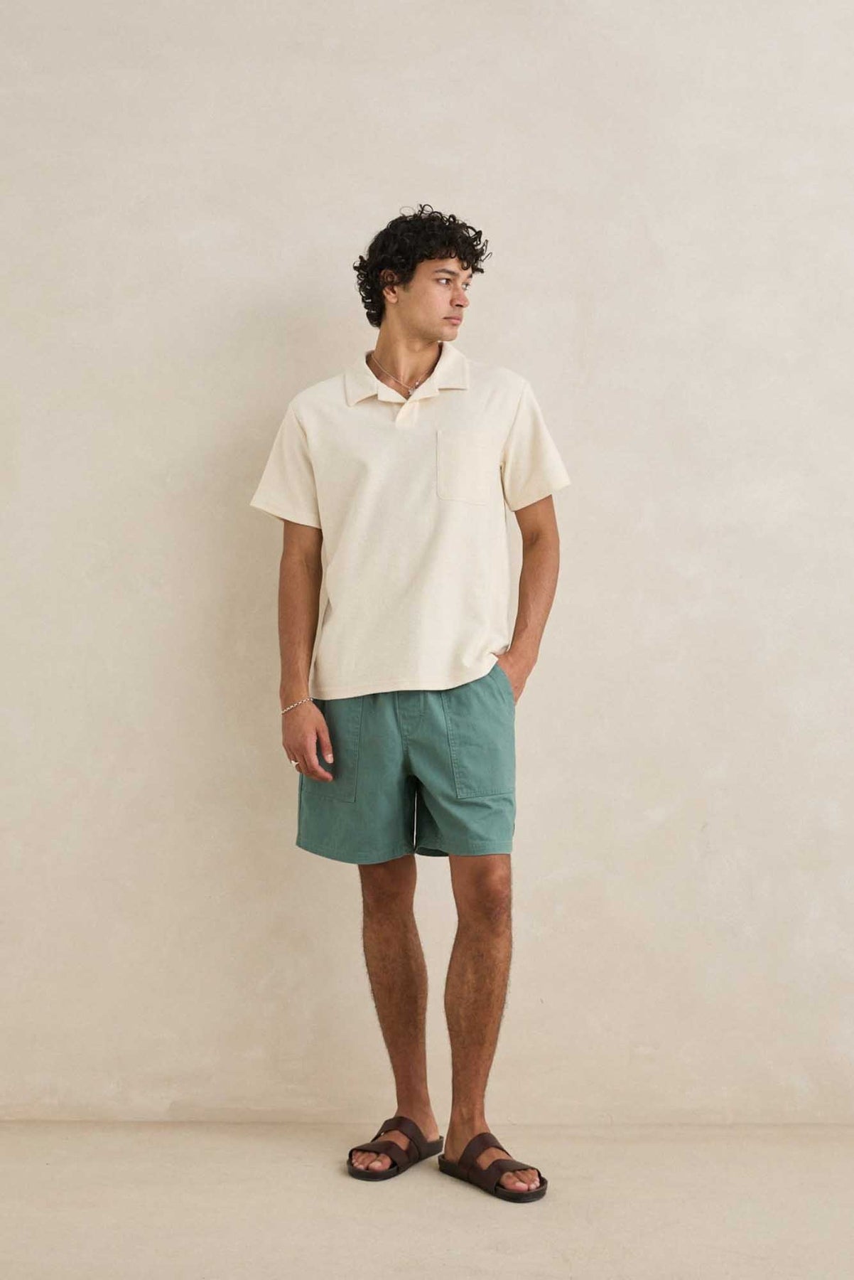 A timeless essential reimagined in soft vintage terry, this polo features a self-fabric collar, chest pocket, and Rhythm trims for relaxed, everyday wear.
