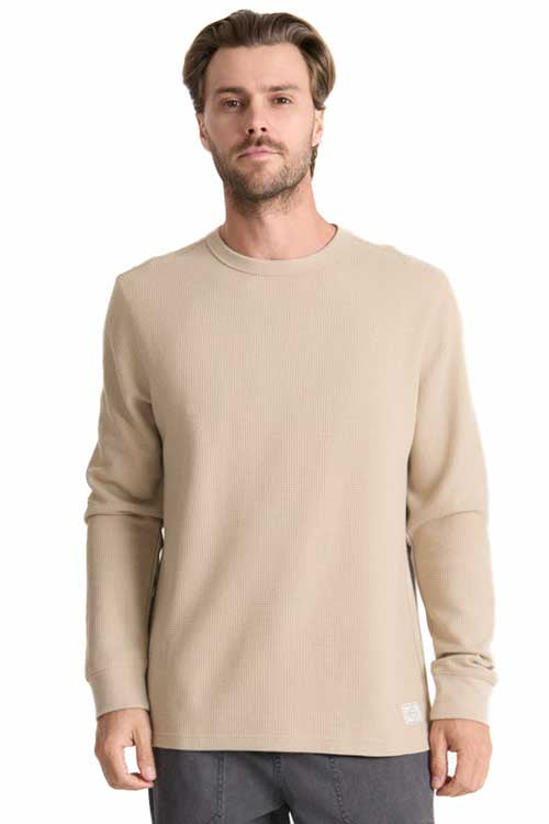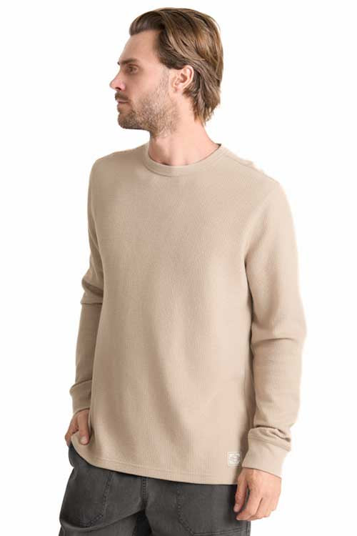 Crafted for crisp mornings and cooler trails, the Well Worn Thermal is your go-to base layer when the journey calls for both comfort and durability. Built from a cozy waffle-knit blend of organic cotton and recycled polyester, it’s engineered for breathability, moisture control, and all-day wear. Pigment-dyed for a lived-in feel and finished with ribbed cuffs and a binded neck, this thermal balances clean style with rugged intent—ready to ride shotgun from basecamp to backcountry. Layer up, head out, stay warm—wherever the road leads.