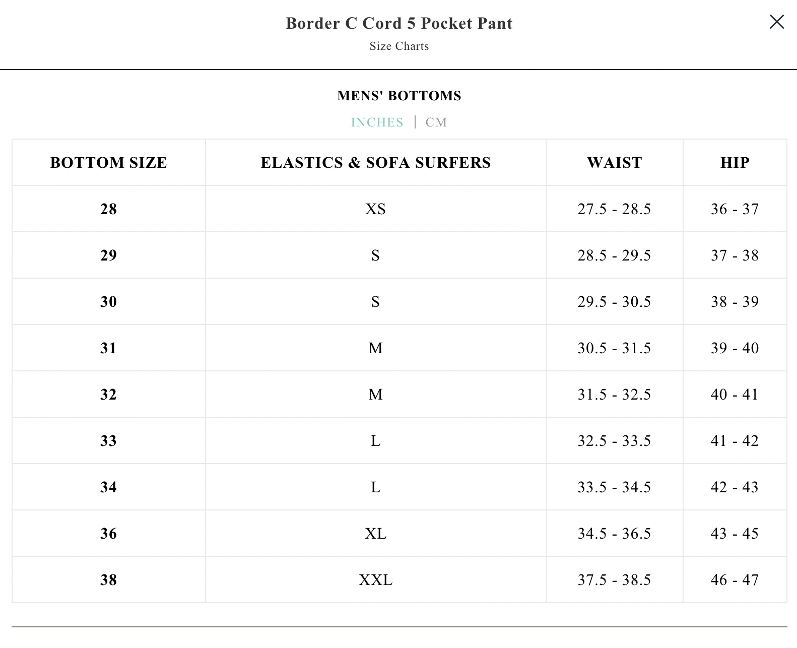 The changing of seasons calls for a pair of classic cords. We have the answer – Border C – a modern fit stretch pant with 5 pockets, made with premium14 wale corduroy. Featuring a 16" leg opening with Vissla embroidery. 32" Inseam.