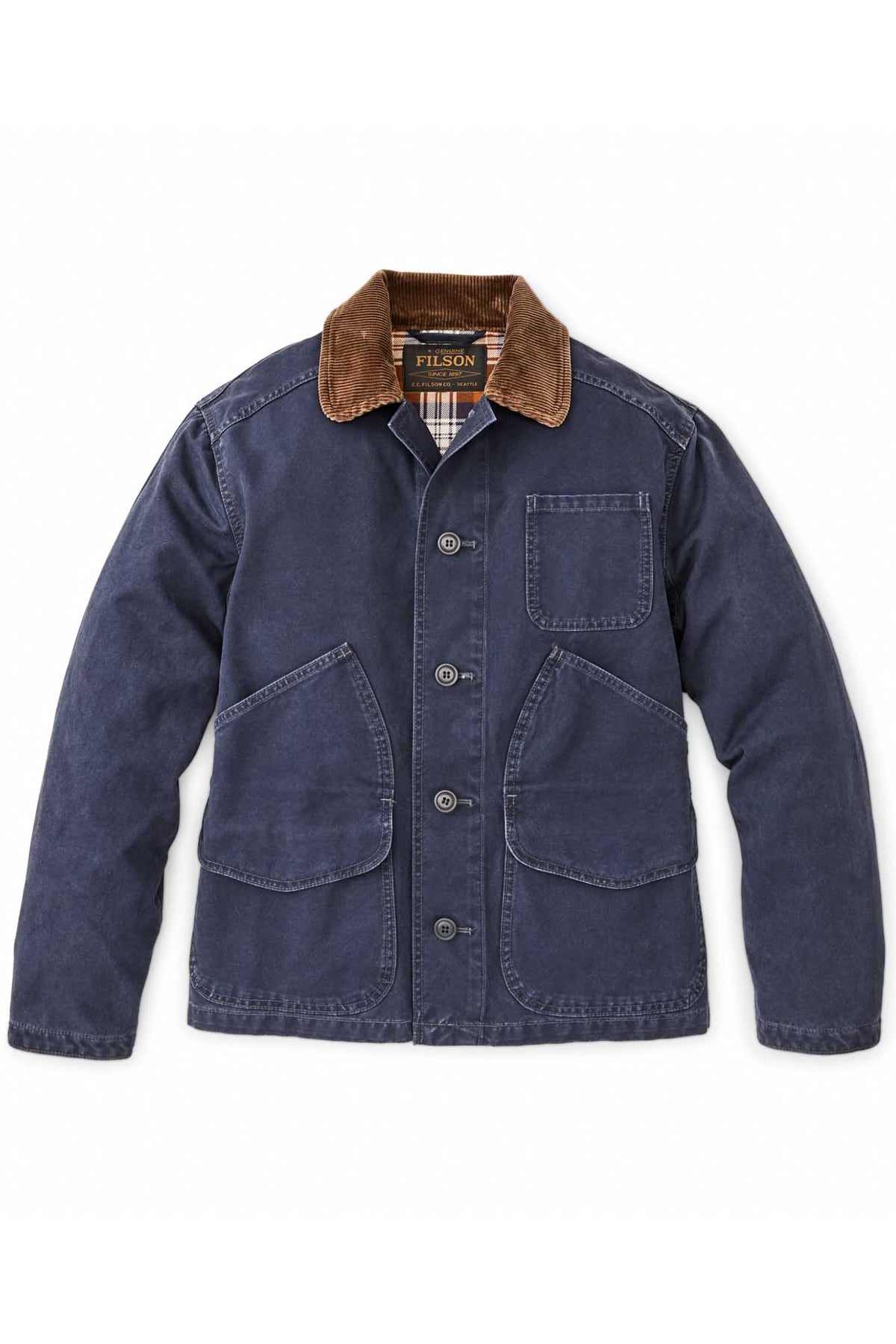 Canvas Outfitter Jacket is a straightforward barrier against brush, thorns, and flying wood chips. The sturdy 10.5-oz. canvas is tightly woven for excellent tear strength and wind resistance. Strong, chip-resistant buttons secure the front closure and adjustable cuffs. The hand pockets double as flaps for the cargo pockets, a design taken from our vintage field coats. Corduroy-lined collar.