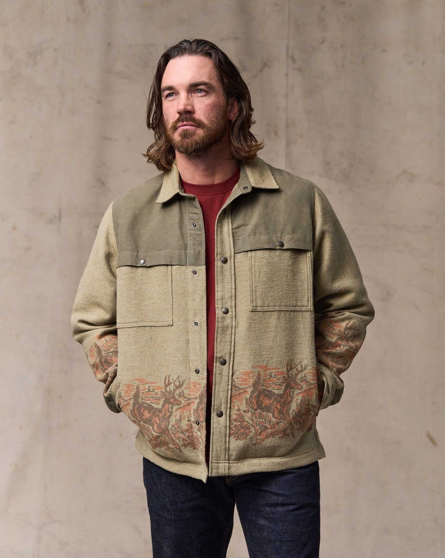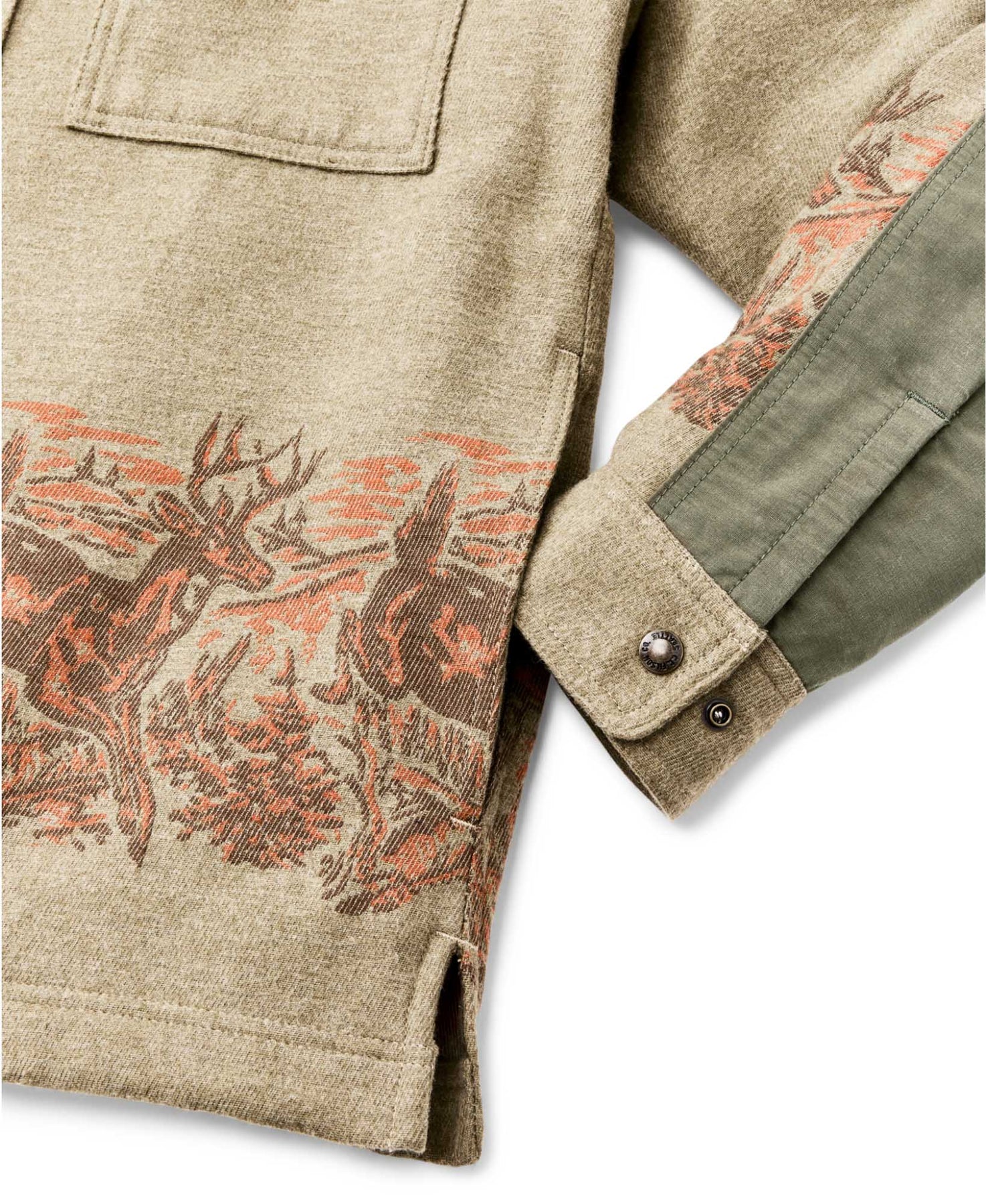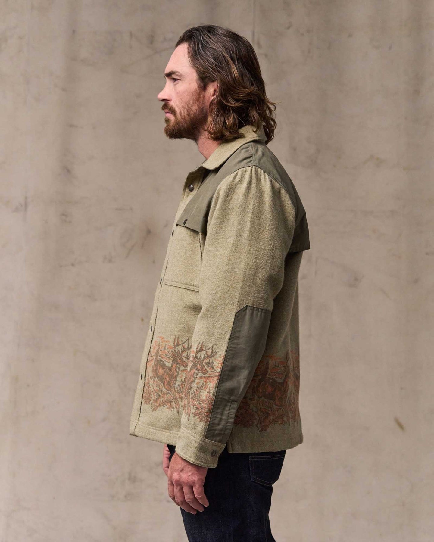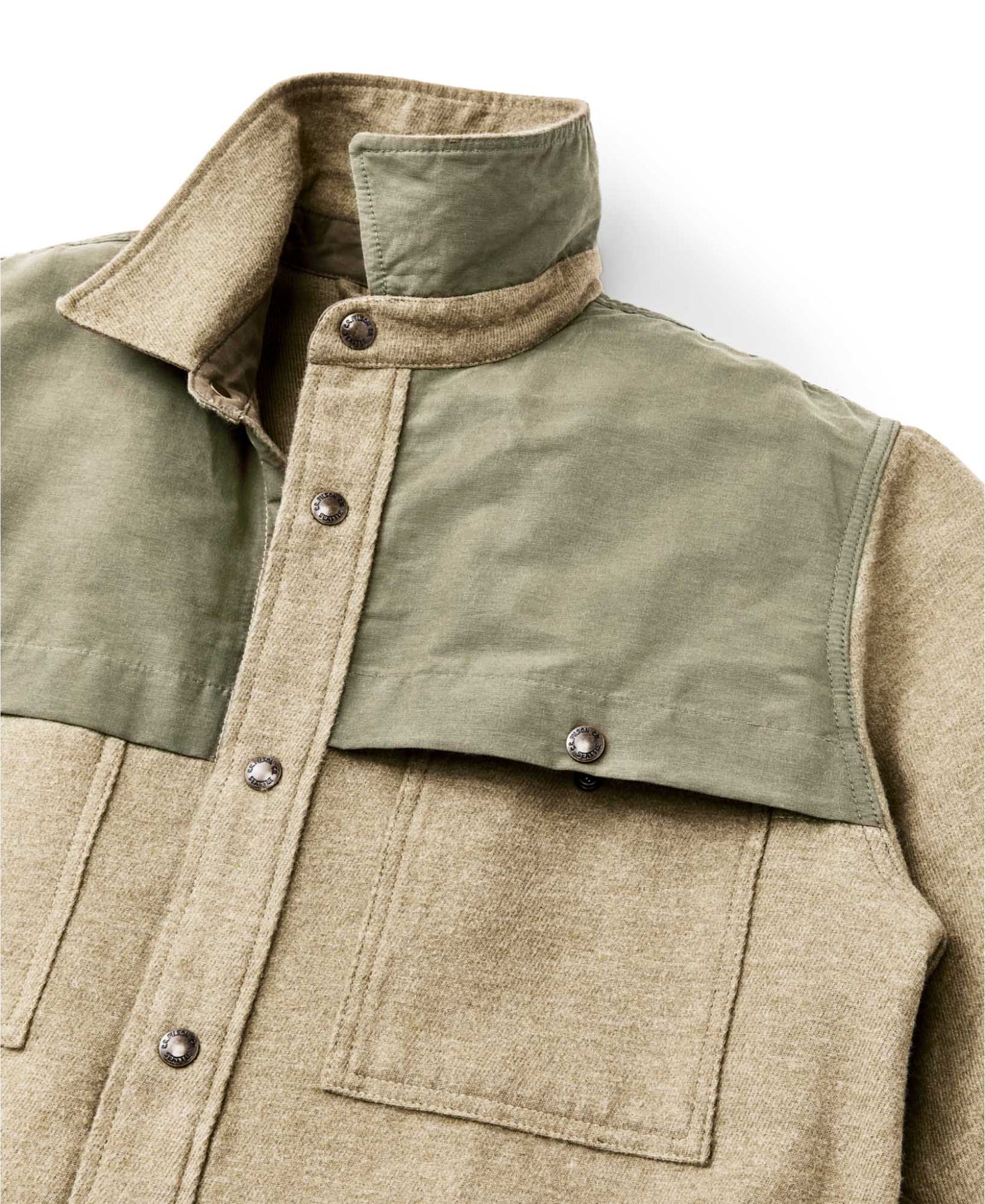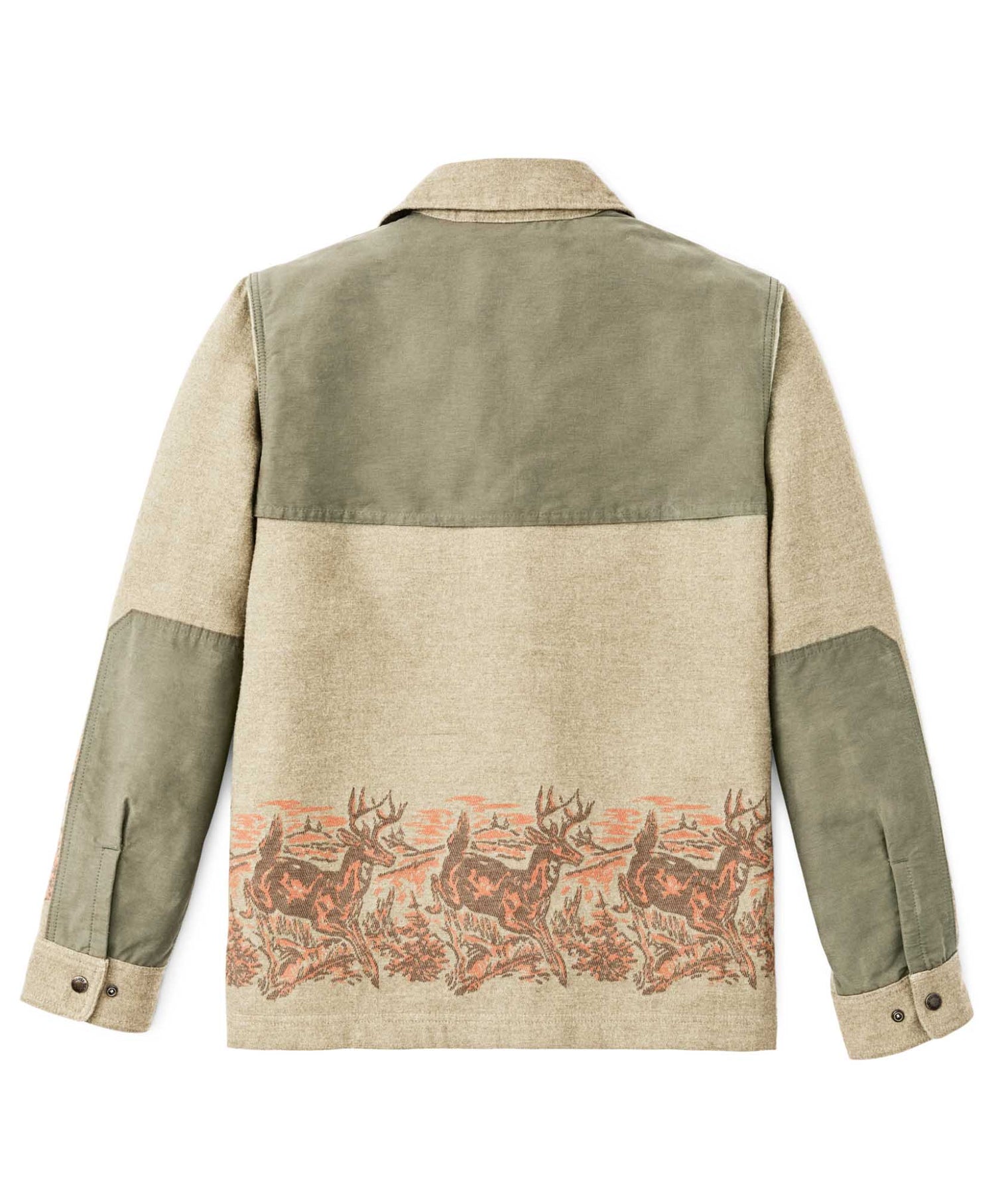 This variation of our classic functional Jac-shirt is made with from midweight 9.3-oz. cotton double cloth. It performs like a light jacket with the cut of a shirt. The fabric is brushed on both sides like vintage camp blankets for comfort, in a weight that's ideal for milder temperatures. Reinforcements over the shoulders and forearms add durability and weather resistance. Snap-close front, chest pockets, and adjustable cuffs. Side-seam hand pockets.