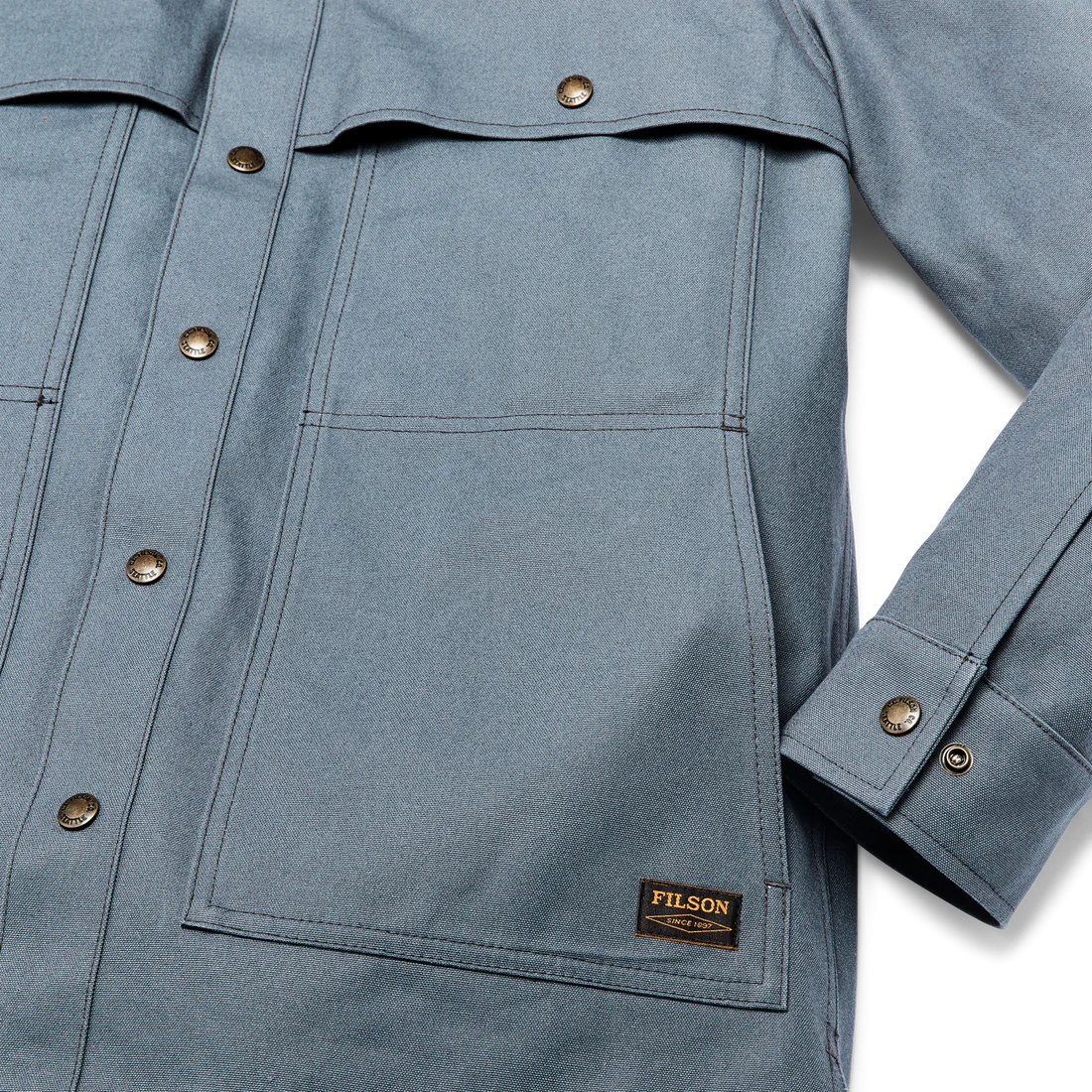 A durable layer for chilly weather, this Jac-Shirt is made with the unwaxed version of our iconic canvas that’s sheltered foresters and sportsmen in the backcountry for a century. The 10.5-oz. 2-ply by 2-ply cotton duck canvas is renowned for its exceptional abrasion resistance. Treated with a long-lasting DWR, it repels light rain and resists staining. An extra layer over the front shoulders provides additional protection and hides the two snap-secure chest pockets. The side-entry hand pockets are easy to access and are bar-tacked for durability. The metal snaps used for the adjustable cuffs and front closure are virtually unbreakable, and easy to operate while wearing work gloves. Side-seam slits provide greater ease of motion.