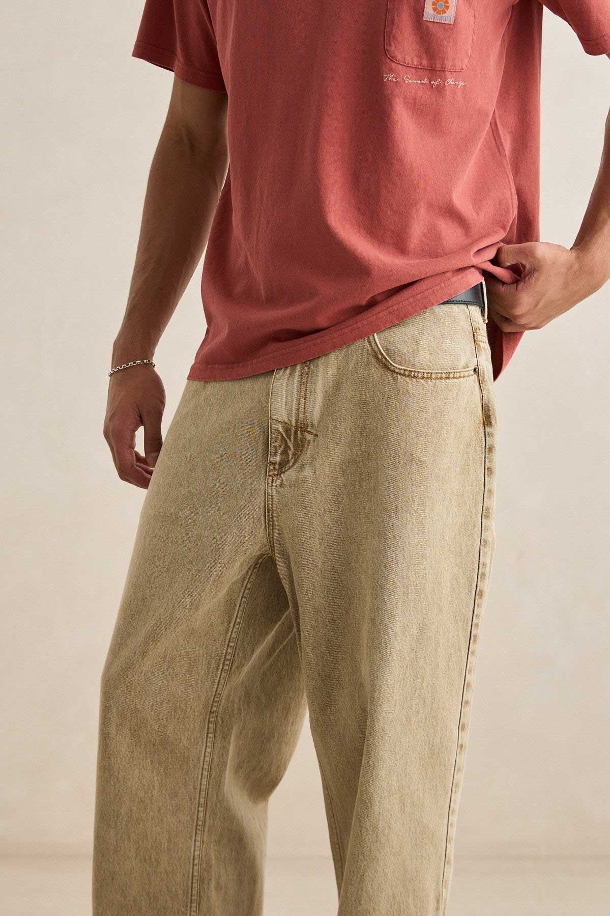 Cut from heavyweight denim and vintage-washed for softness, the Essential Jean features a relaxed straight leg, fixed waistband, and Rhythm signature trims.