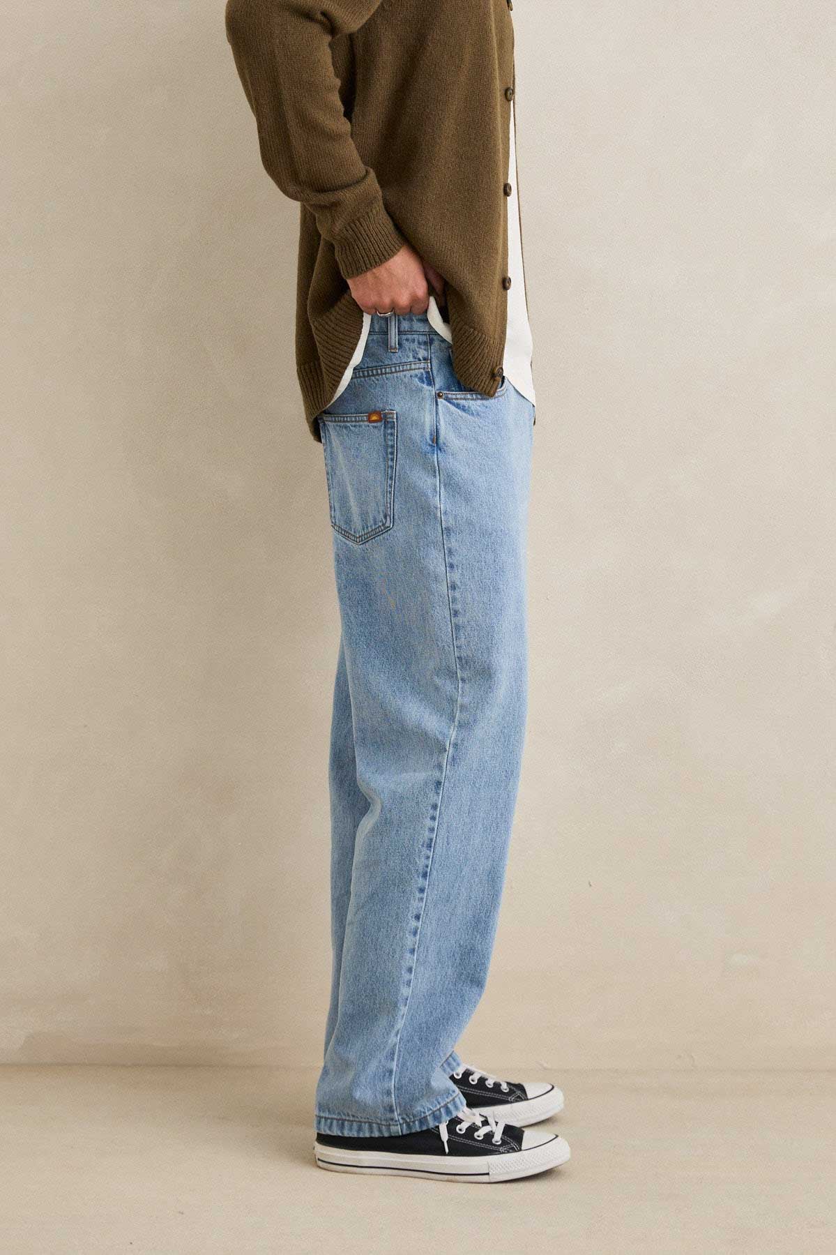 A true staple, the Essential Jean offers a timeless straight-leg fit, classic 5-pocket detailing, and a soft vintage wash for everyday wearability