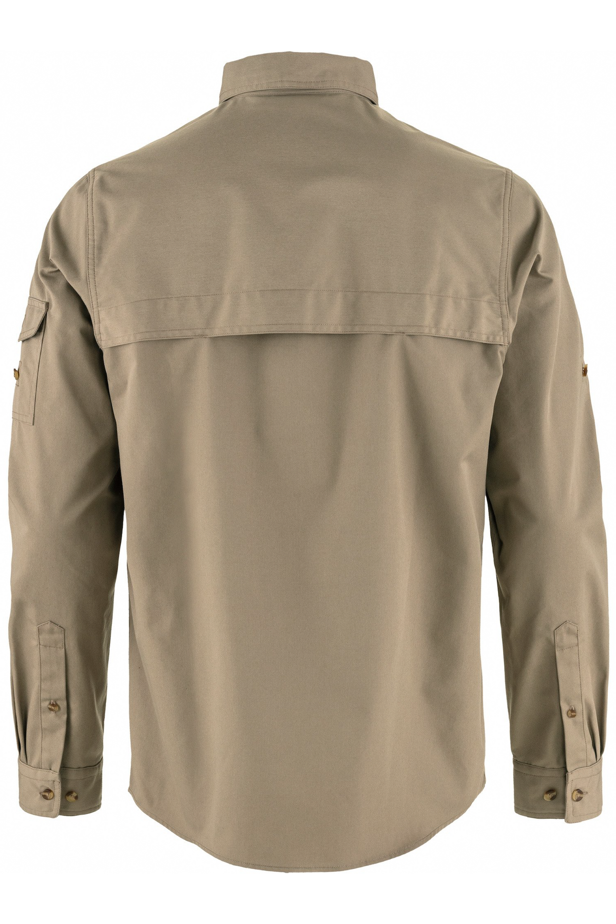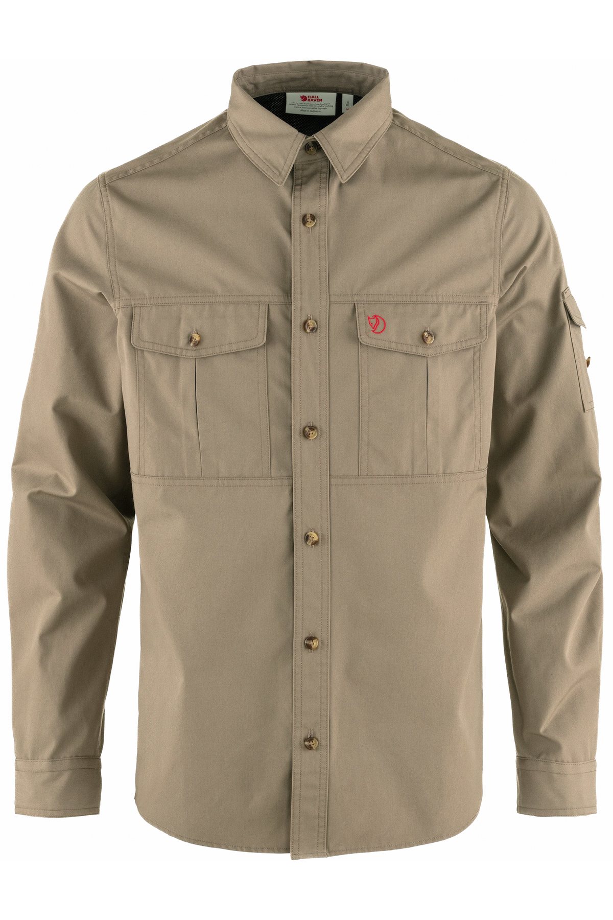 Hardwearing shirt with regular fit for trekking and multifaceted outdoor life. Made from unwaxed G-1000 that is pre-washed for a soft feel against the skin. The material wicks away moisture and dries fast giving maximum comfort during sweaty activities. Any excess heat can be released through ventilation openings with net fabric under the arms and in the yoke across the shoulders. Two chest pockets and an arm pocket, all with buttoned flaps. Sleeve buttons keep rolled up sleeves in place.