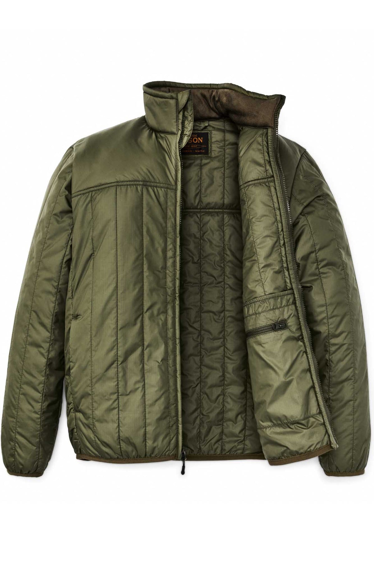 Elastic binding on the hem and cuffs ensure a comfortable fit while keeping the wind out. The front zipper features a zipper garage at the neck to prevent pinching. The collar and zippered hand pockets are lined for warmth and next-to-skin comfort. Zippers on the interior and hand pockets keep valuables secure.