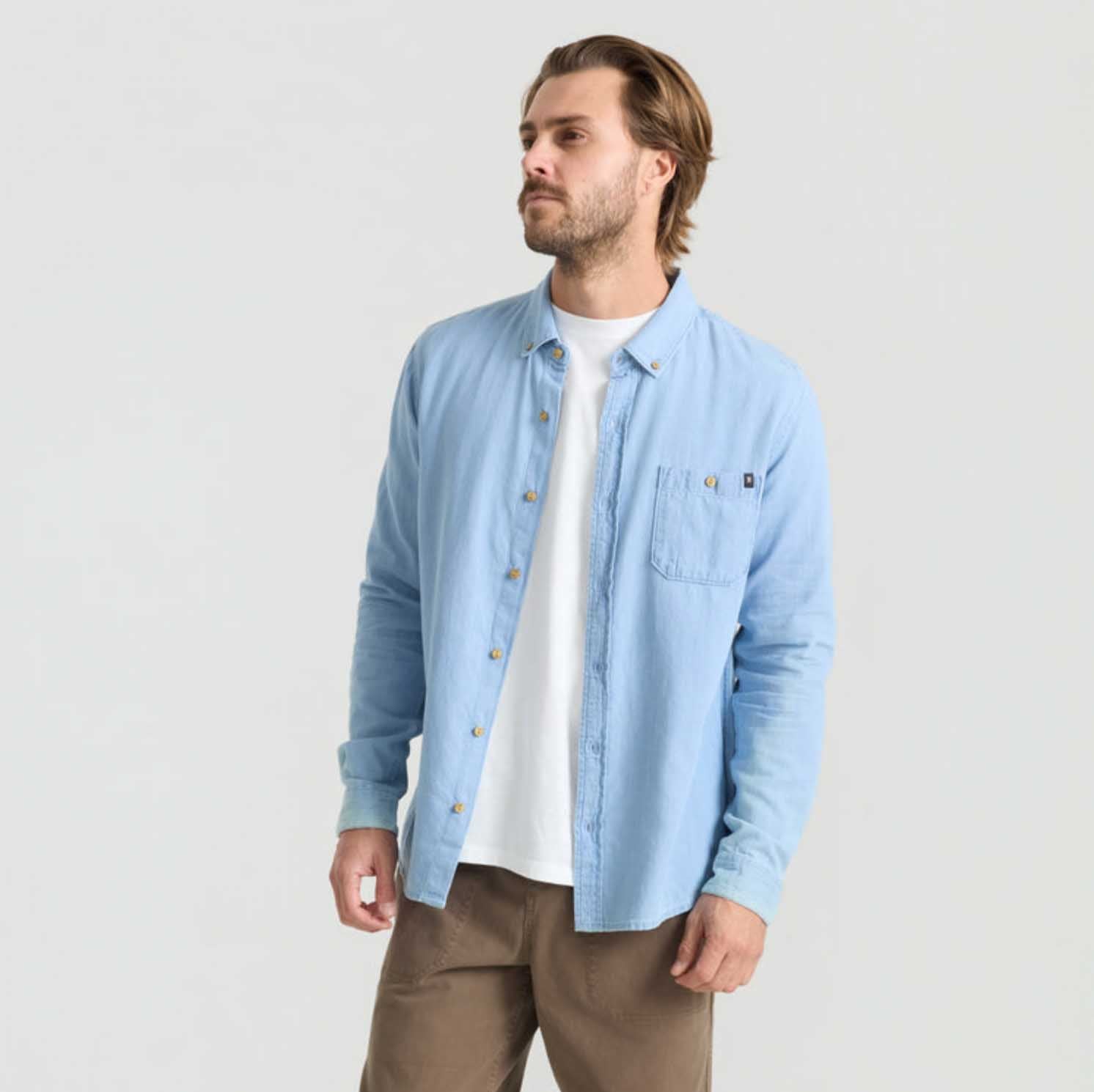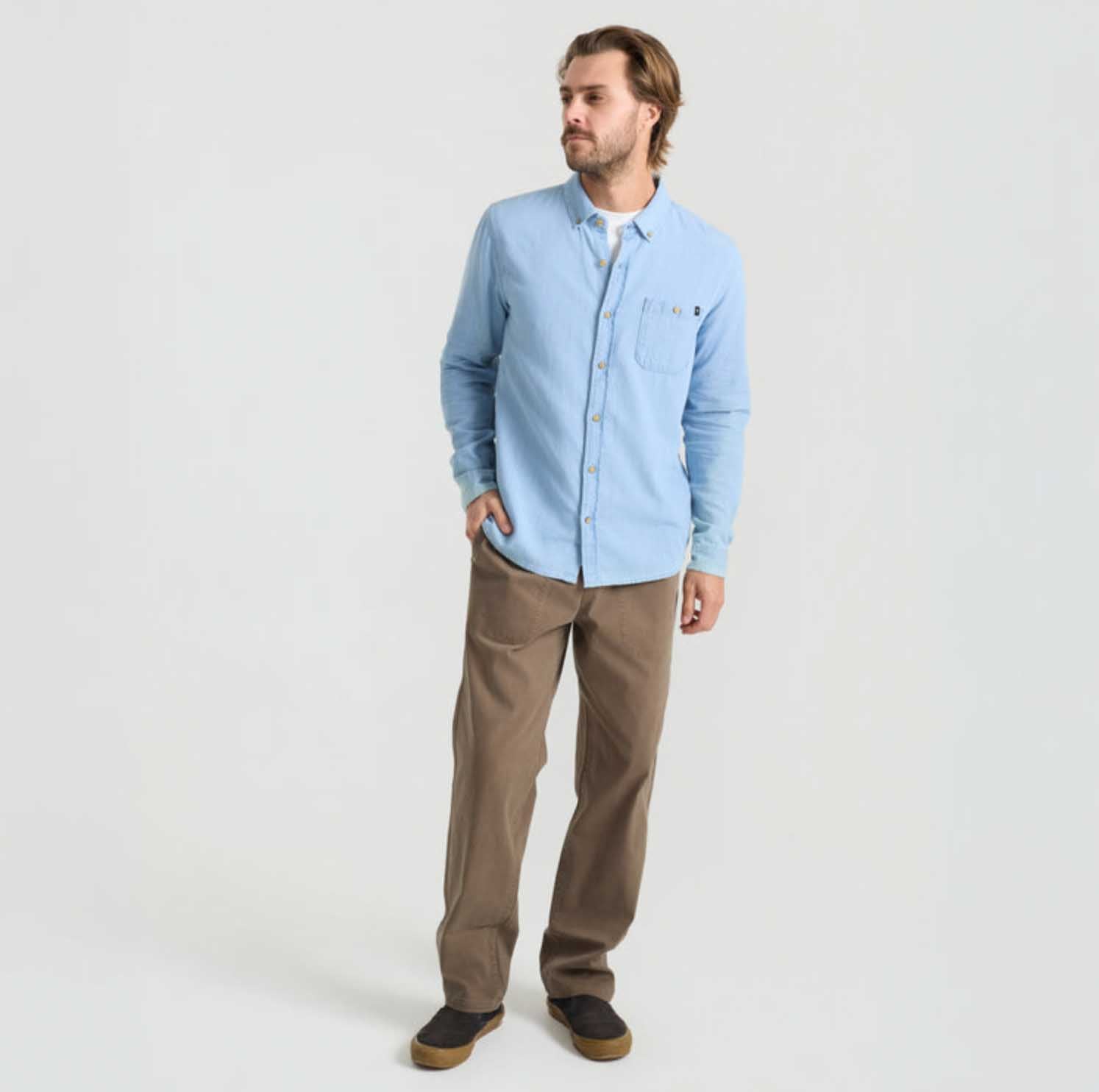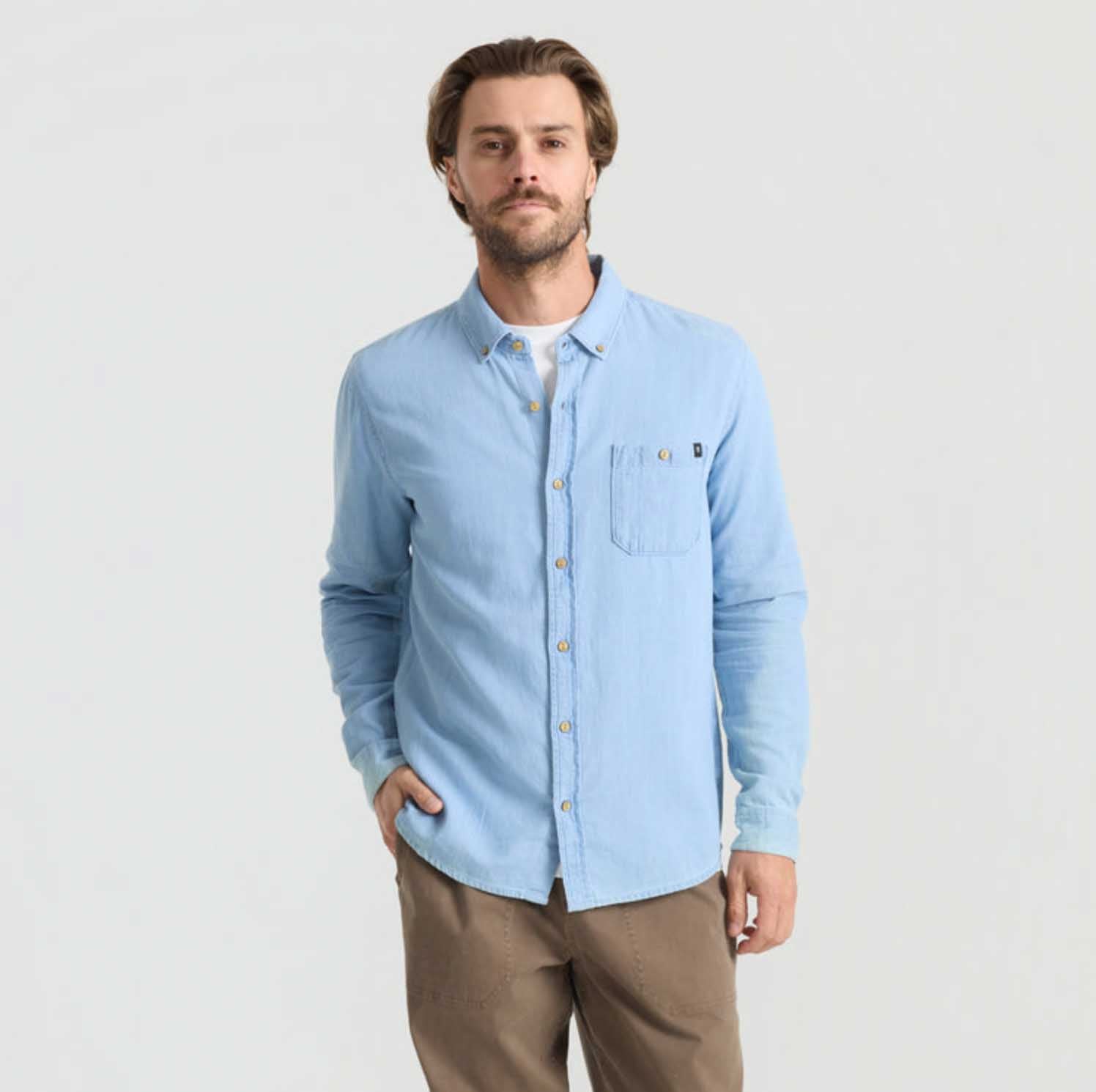 The Scholar Chambray Button Up blends utility with intention, built for those who move seamlessly between grit and refinement. Crafted from 100% organic cotton in a twill weave, it offers a soft hand with durable structure that stands up to the journey.