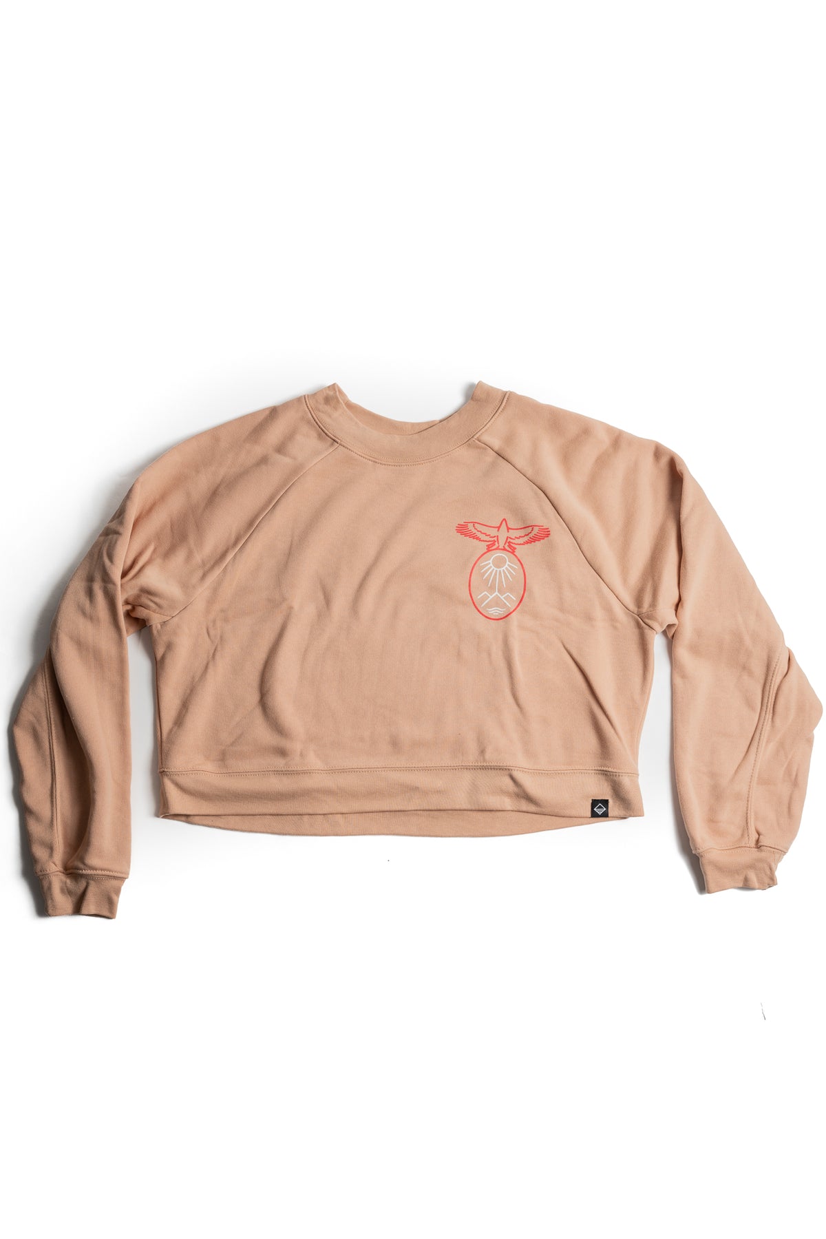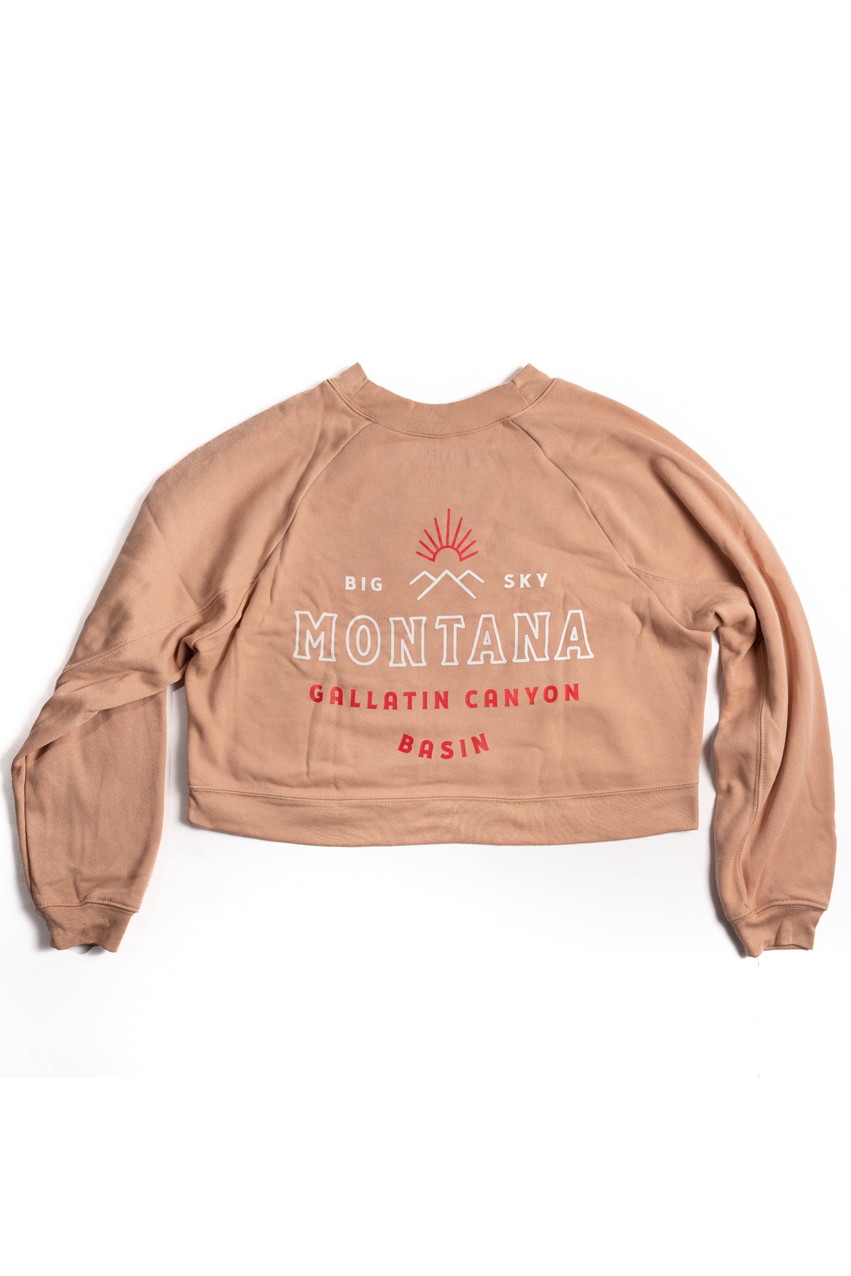 Cropped crew sweater. Designed and Printed in Montana.  This Cropped Crew is in Women's cut.