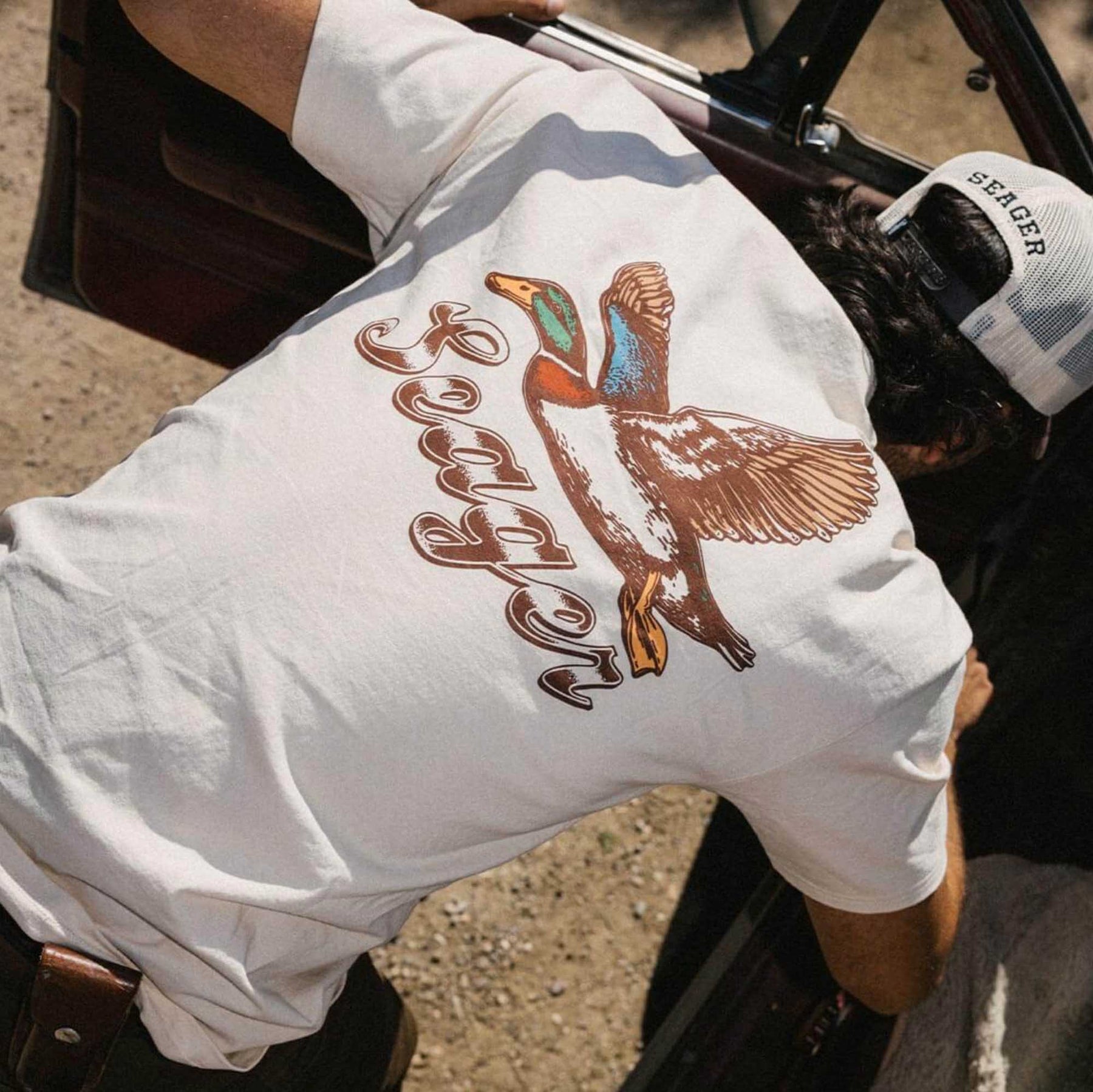 A classic that never misses. The Greenhead Tee keeps it clean with a flying mallard and Seager script on the back, the kind of graphic that feels right wherever you’re headed - from first light to last call.