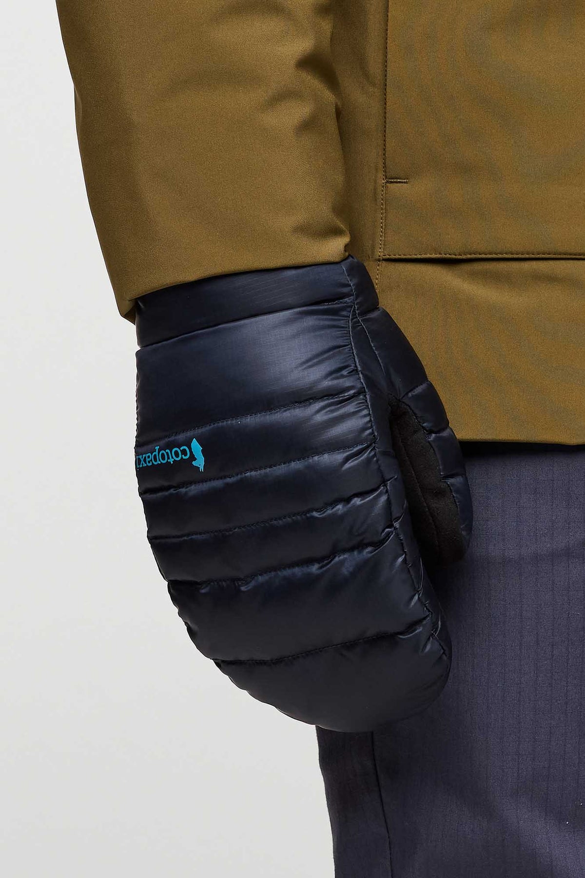 The down mitten is made with a 100% recycled shell and lining and features a blend of responsibly sourced down and recycled insulation.