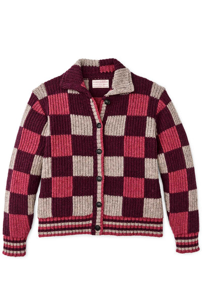 Checkered Wool Cardigan - Burgundy / Gray Check - Women's