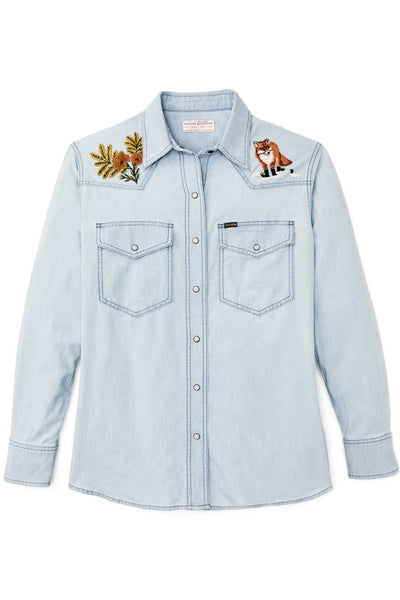 Embroidered Western Shirt - Light Indigo Chambray / Fields - Women's