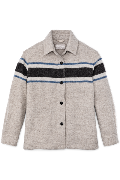 Wool Overshirt - Gray / Black Blacket Stripe - Women's