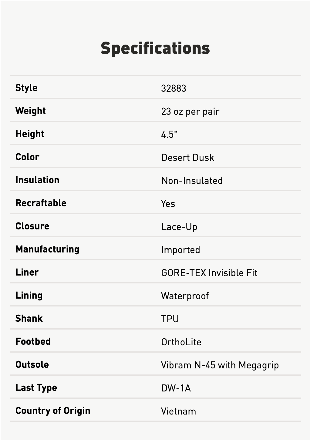 How It Fits - The DW-1A last utilizes Precision Fit, a true fit to accommodate the biometrics of women’s foot shapes. Built with a narrower heel, wider toe box, and a lower height increase from toes to ankle for superior comfort and optimal support.