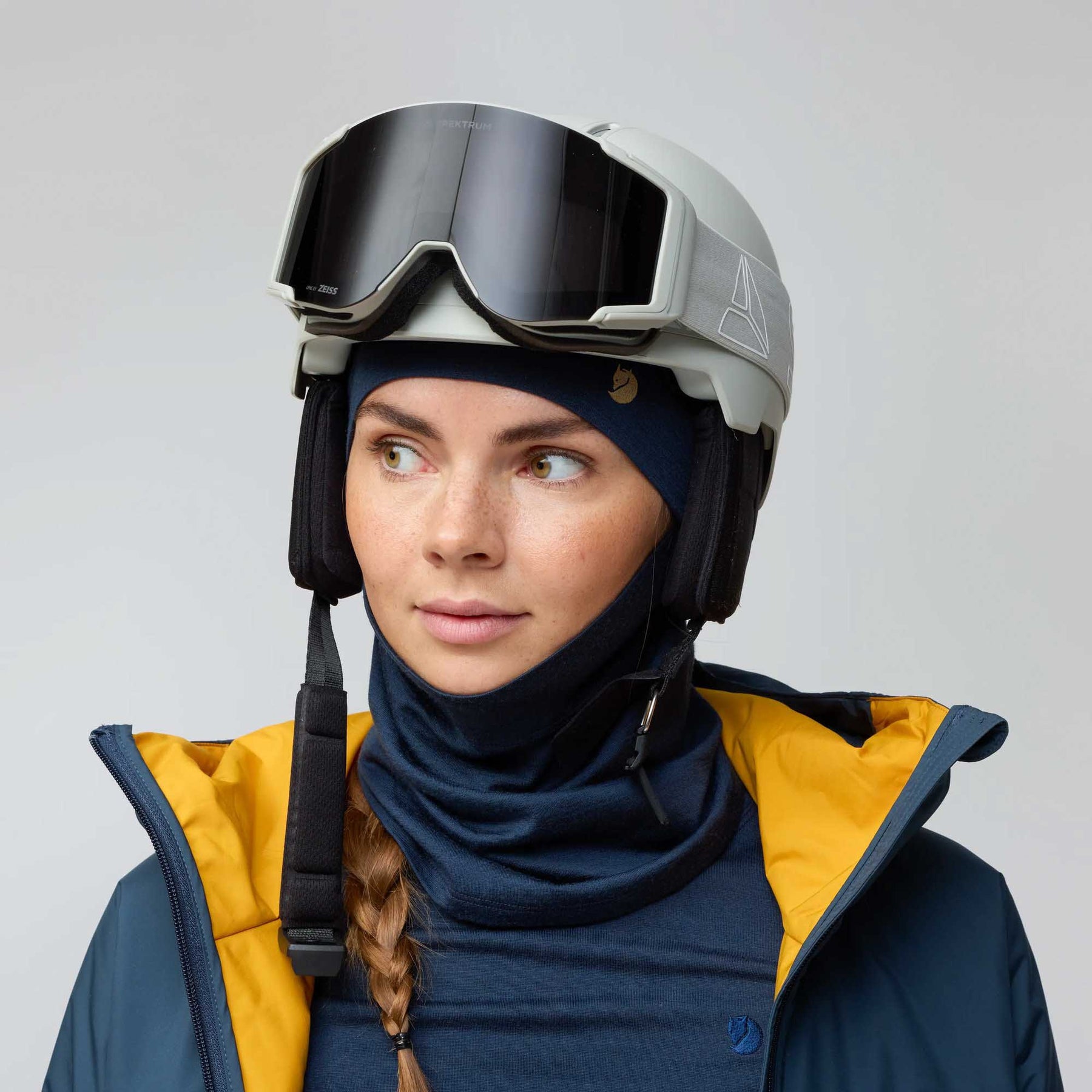 Light and comfortable balaclava in a soft 100% traceable merino wool made to fit snuggly under a helmet or hood or even a cap or beanie. Bergtagen Merino Balaclava provides protection for the face and neck on cold, windy days and is very versatile – its hinge construction allows it to be worn high up over the nose, low around the chin, or folded back as a neck gaiter. The soft merino wool wicks away moisture, insulates even when damp and naturally resists odours.
