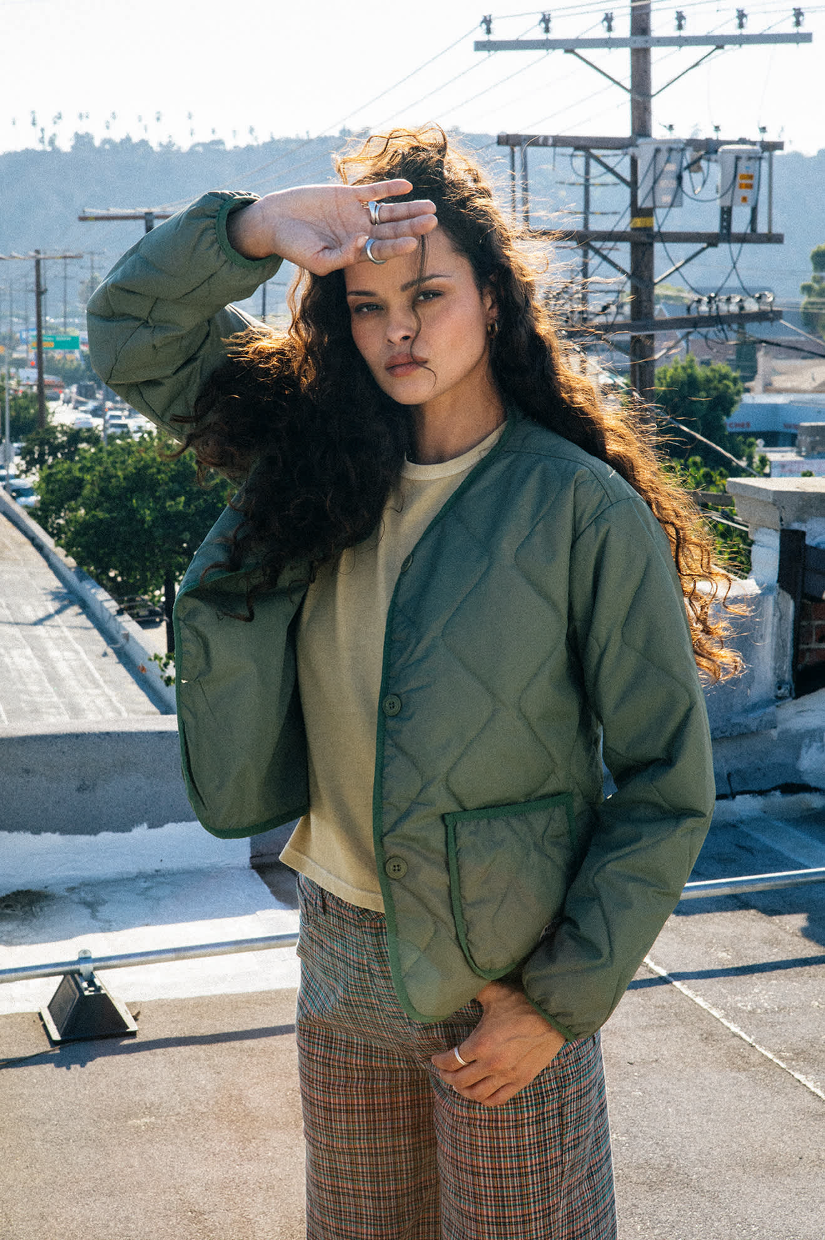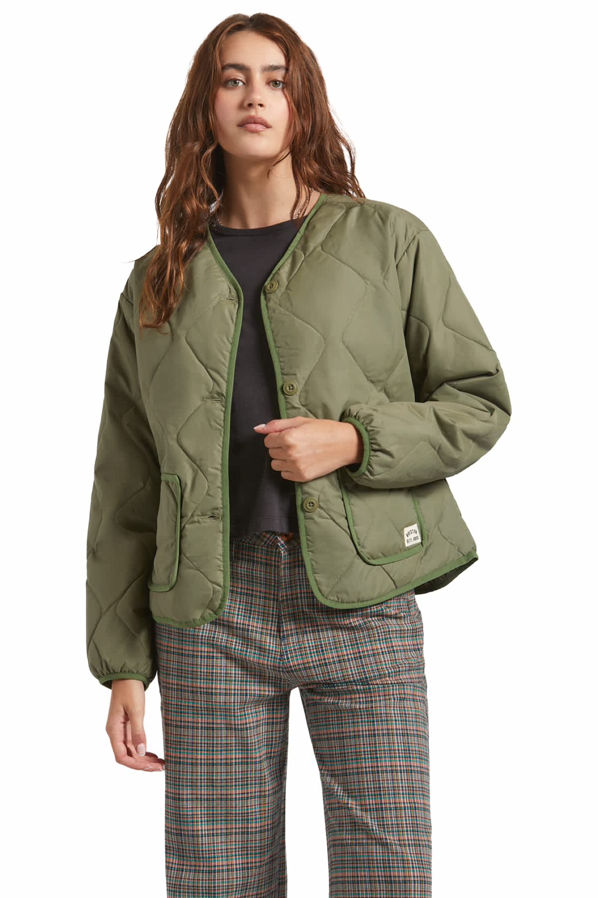 Delilah Jacket is cute and cozy with a durable water-repellent finish. Patch pockets with a zipper closure on the chest pocket add space to stash your things safely.
