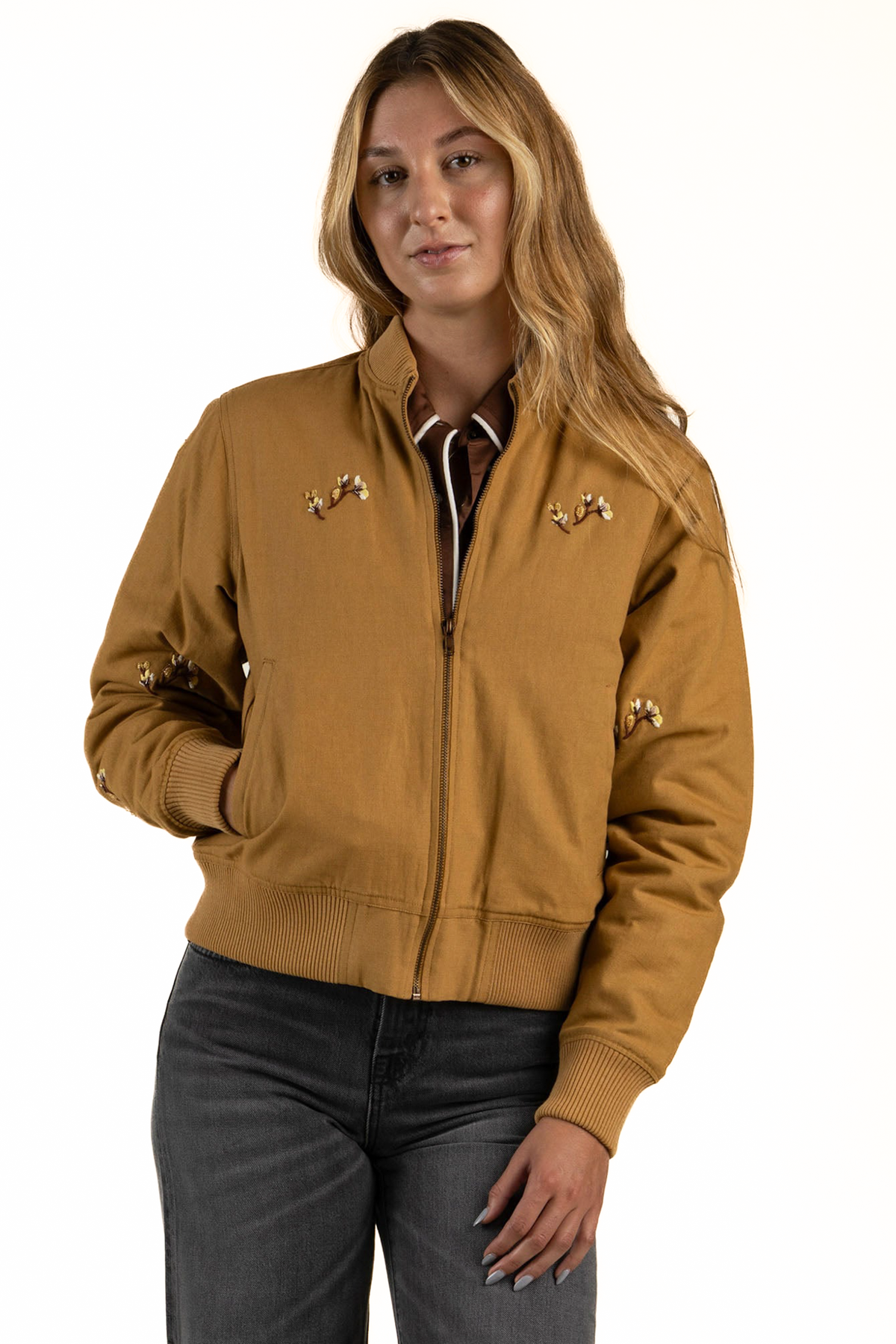 The jacket that can do it all, from hitting the strip to rompin’ on dusty trails. We took the rugged DNA of a workwear bomber and gave it a flattering, boxy silhouette. Made with durable cotton canvas and lined for warmth, it’s the kind of outerwear that turns heads without trying too hard.