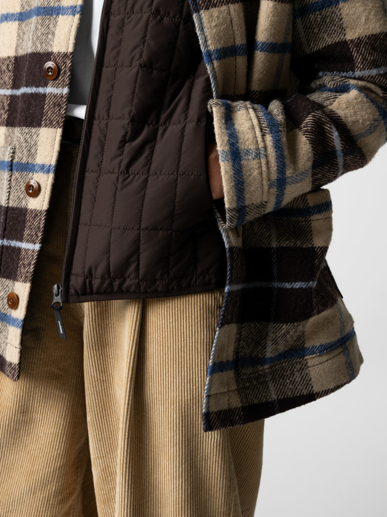 Built in a hard-wearing, tightly woven wool blend fabric, it's warm, relaxed and ideal for throwing on over knits, sweats and T-shirts. Created in a traditional blanket style check, you'll be reaching for this on camping trips, post-surf and first thing in the morning for the commute.