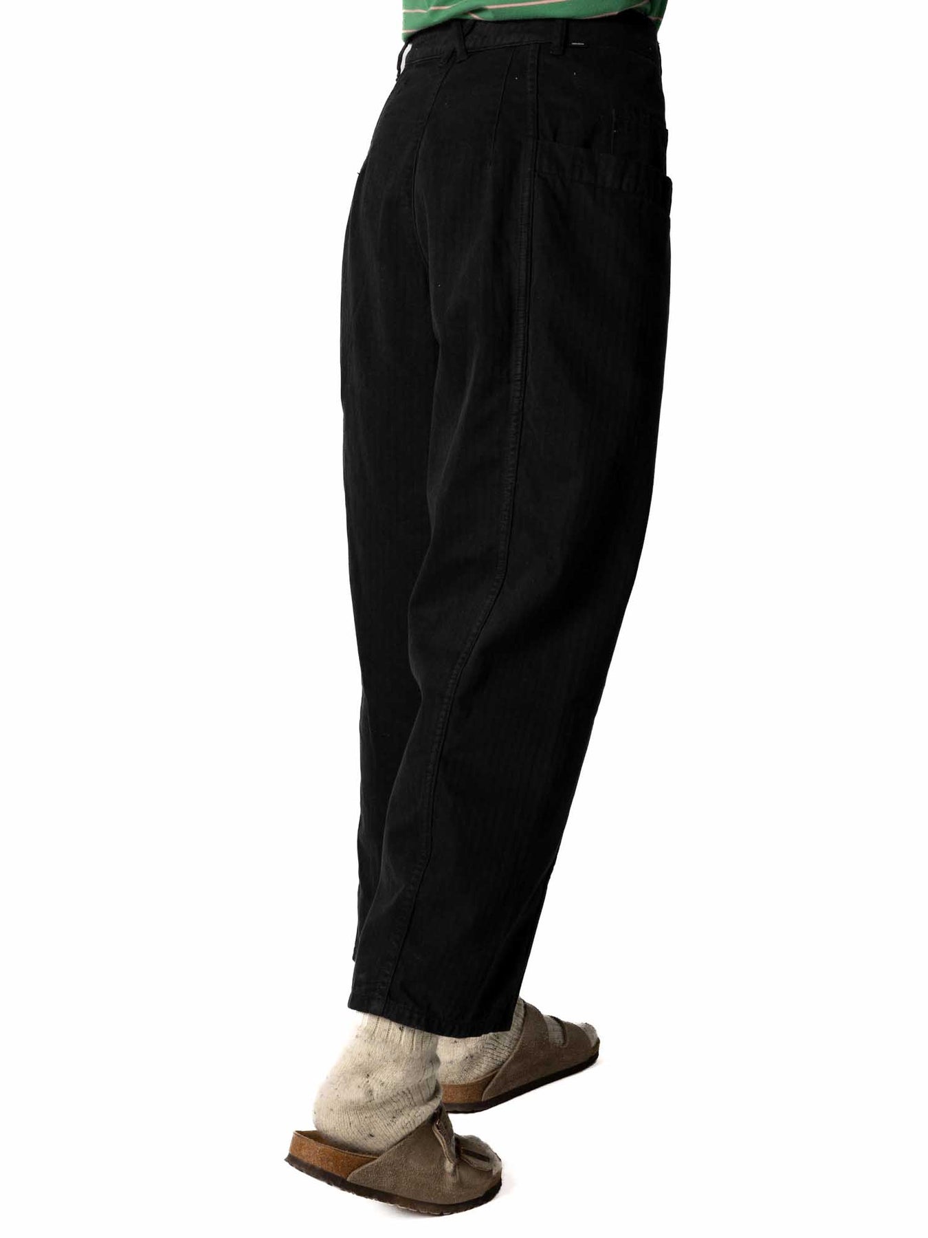 Designed for the workshop and beyond. With a barrel leg shape, you'll find a large dump pocket on either side, trapped between two seams, perfect for stashing tools and supplies. Sitting at the mid-waist, these super comfortable trousers are for creators.