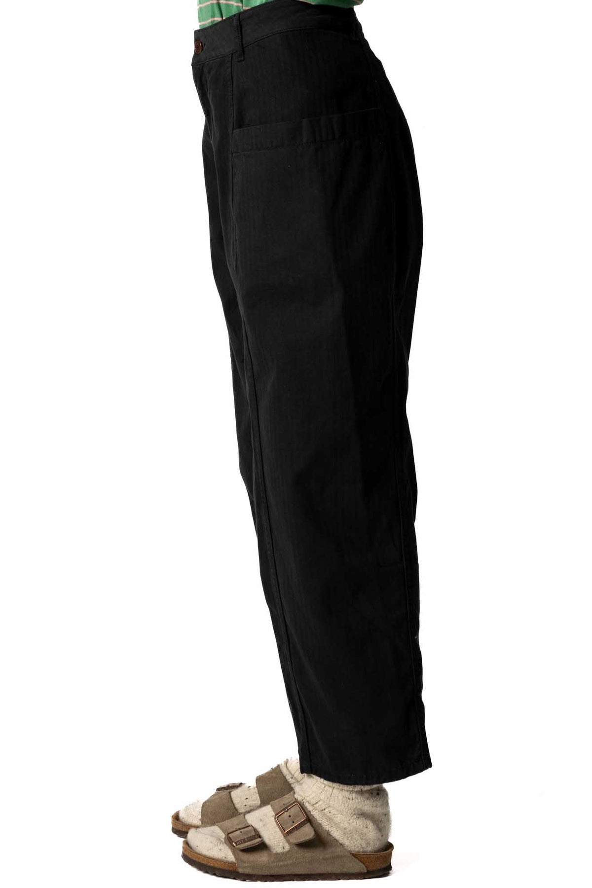 Updated with a new textured herringbone fabric, the organic cotton Croft Workwear Barrel Trouser is hard-wearing, flattering and versatile.