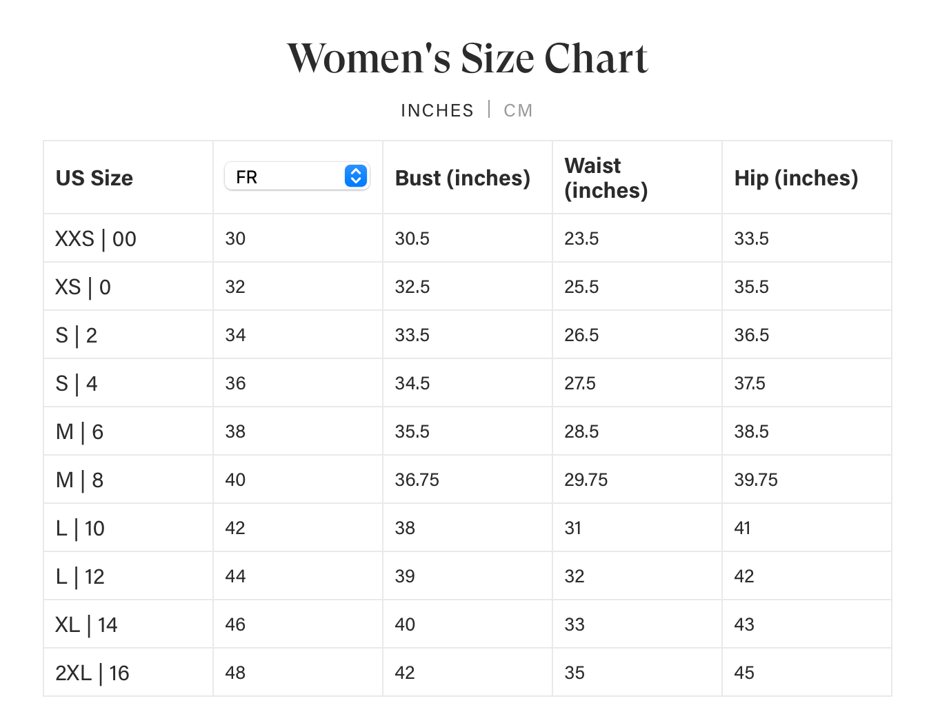 (Measured from size S).