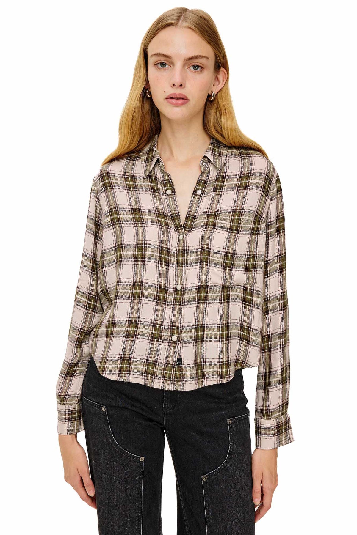 If you love the Hunter, meet the Malin. Cut from our signature ultra-soft rayon with a loose twill weave, this plaid button-down has the same timeless feel—now 5" shorter for a cropped, boxy fit.