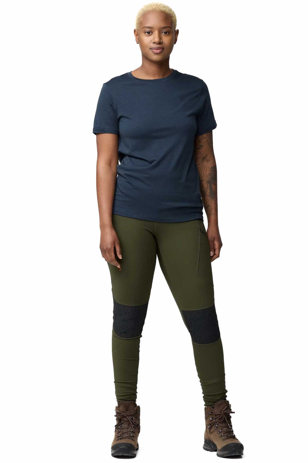 Extra hardwearing trekking tights with reinforcements over the seat and knees, made in a durable, double-knitted stretch fabric made from recycled polyester with a matte, opaque finish. Reinforcement fabric with a water-repellent finish provides extra protection in rough terrain – Abisko Trekking Tights HD W are well-fitting, highly functional and technical tights perfect for all kinds of trekking where you need full freedom of movement combined with durability. A comfortable, high waistband with inside drawstring and full-length legs with low-profile hems. Secure leg pockets – one zippered and one with an envelope closure – angled for easy access and a flattering fit.