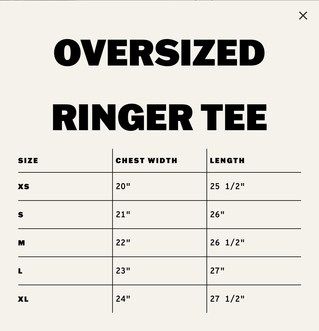 The Oversized Ringer Tee is a slouchy fit and durably designed in our most substantial heavy weight cotton.