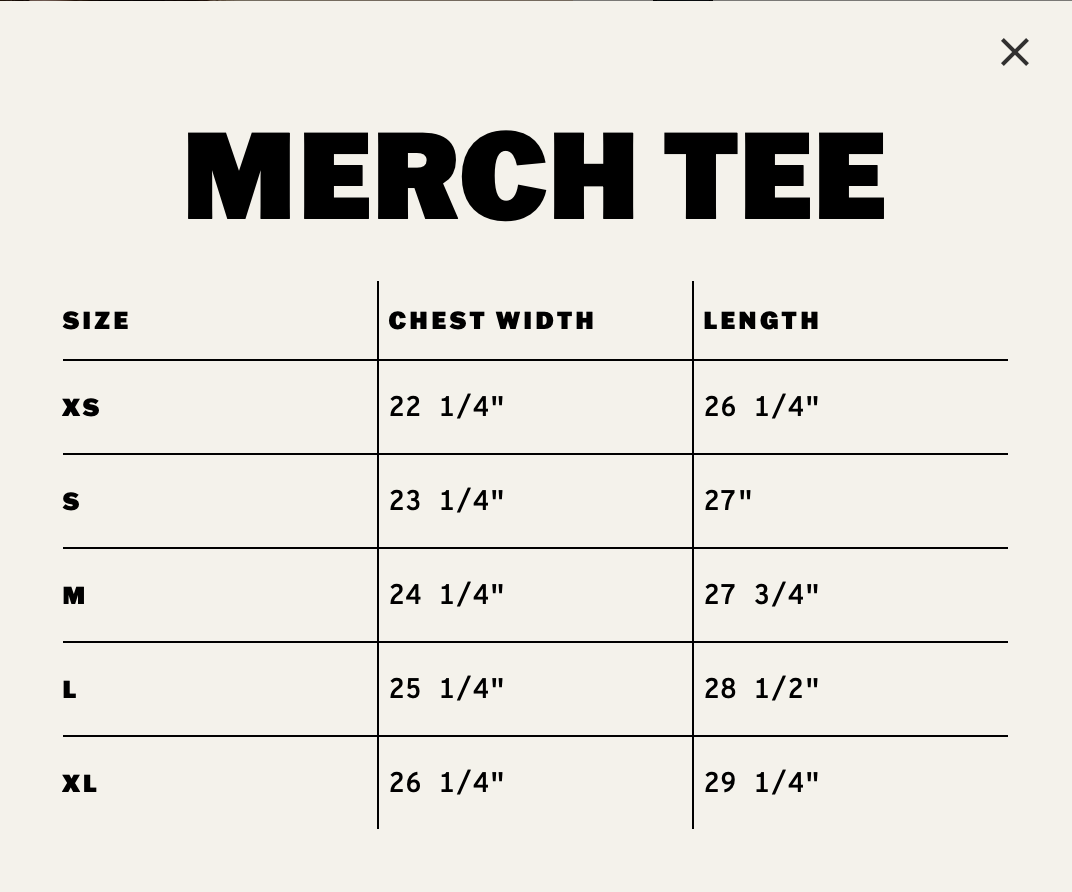 The Merch Tee is an oversized fit, designed in our midweight cotton to achieve the perfect drape.