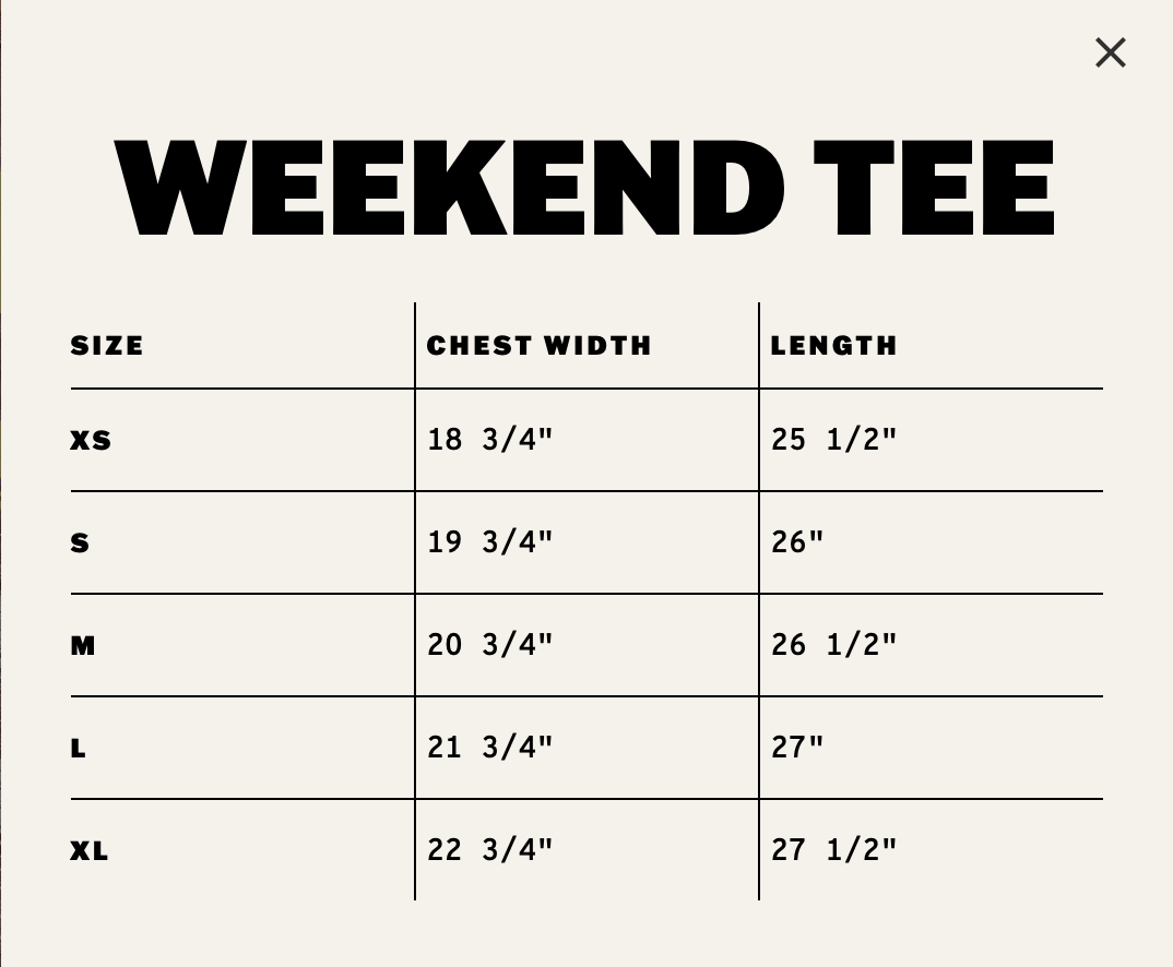 The Weekend Tee is a slouchy fitting style, durably designed in our most substantial heavy weight cotton.