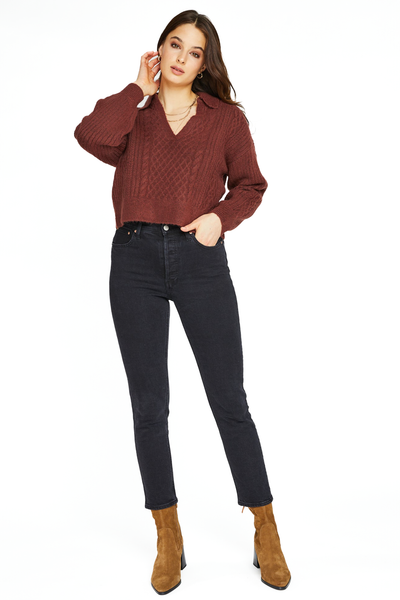 Echo Pullover Sweater - Merlot Stripe - Women's