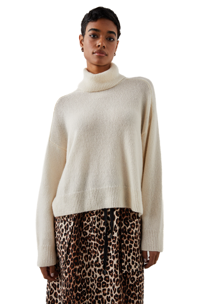 Mora Roll Neck Knit Sweater - Ecru - Women's