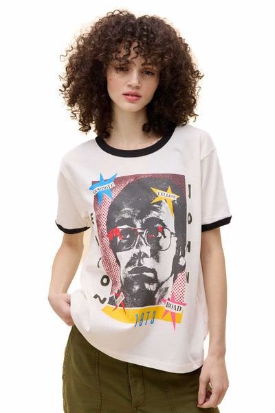 Elton John 1973 Pop Art Oversized Ringer Tee - Vintage White - Women's