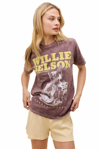 Willie Nelson Red Headed Stranger Weekend Tee - Brown Stone Acid Wash - Women's