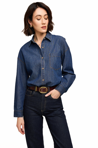 Whitney Denim Button Down Shirt - Dark Wash - Women's